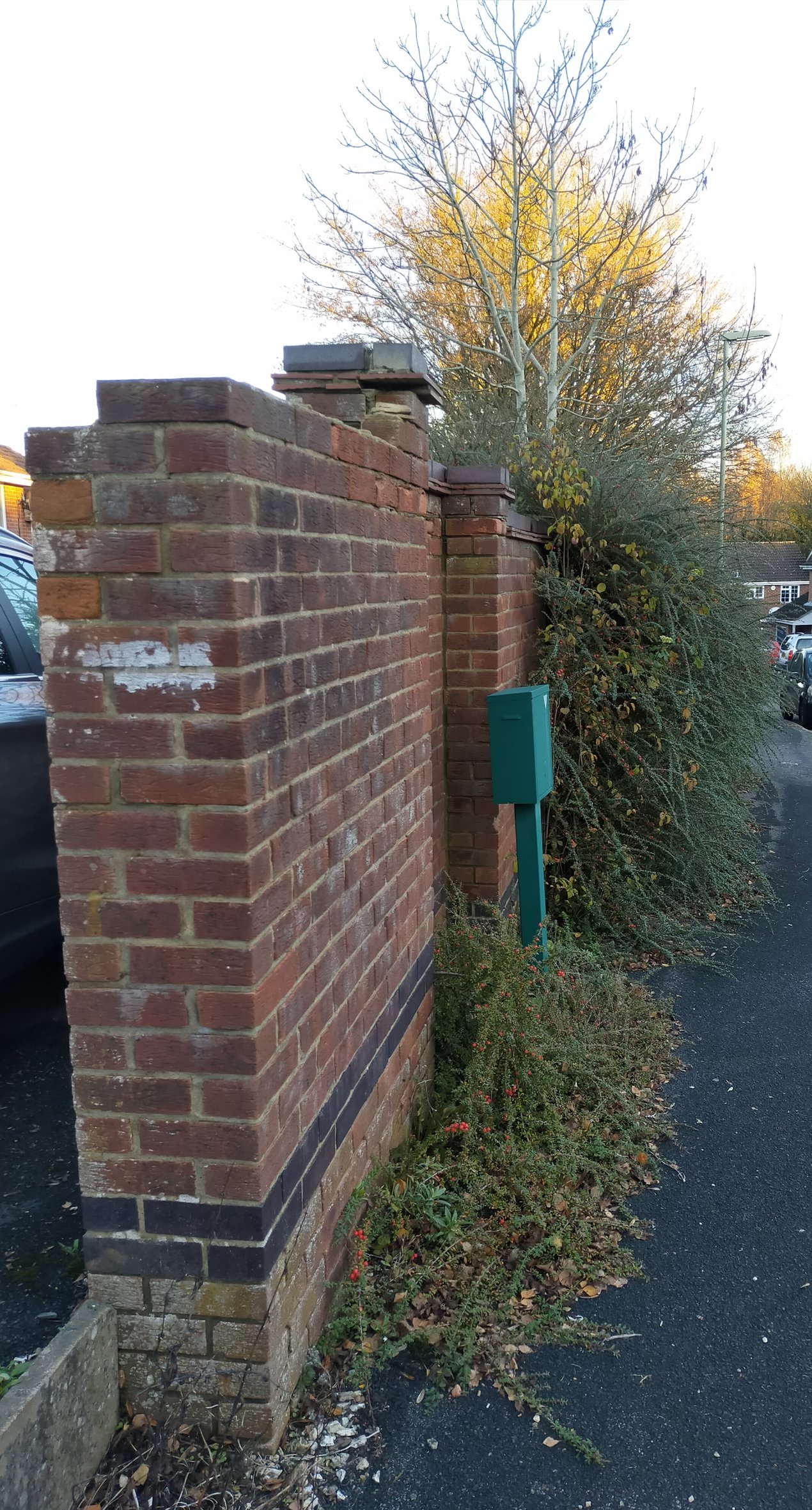 We have a damaged wall either side of our private carpark. The wall to the left of the carpark (see pic) runs parallel and the bushes and pavement are owned by the council.