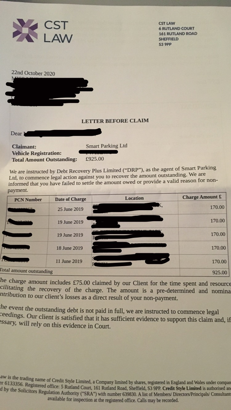five parking tickets, even at the maximum of £100 , is £500 , not what is on that ludicrous letter , the added pcn charges are not lawful , Smart are having a laugha keeper has no liability in Scotland, so no naming the driveras mentioned above, read the CST LAW letters thread, where everyone else has similar letters, its part of the econimcs of covid19 , chasing old invoices for alleged breach of contract and inflating the figures3
