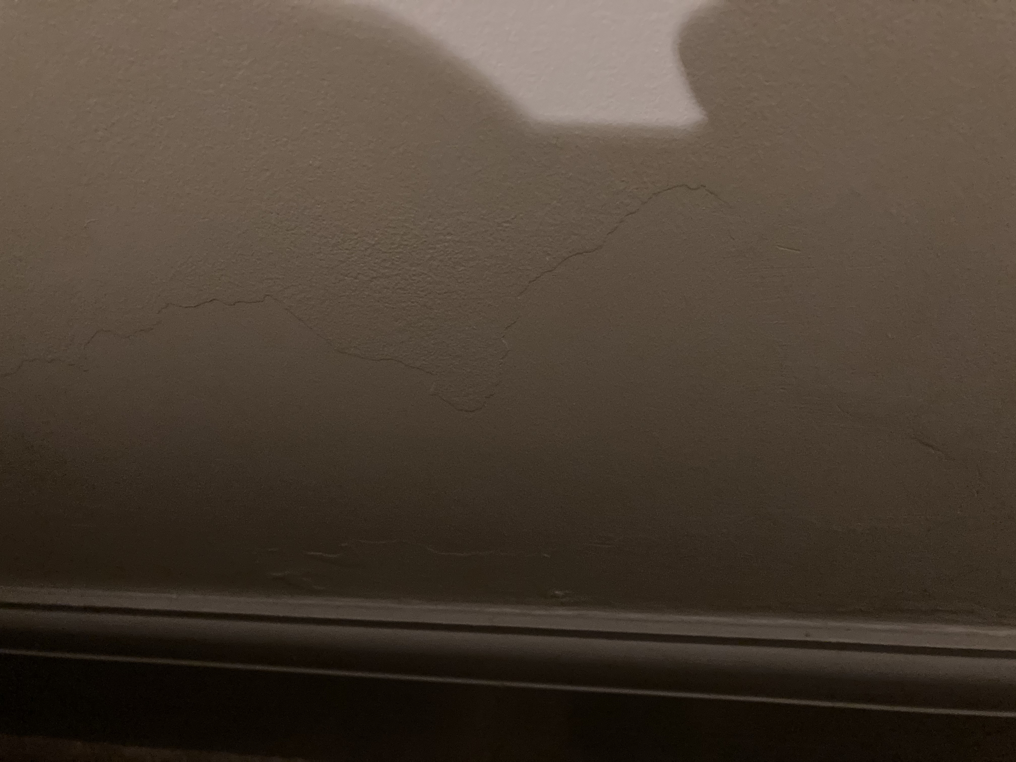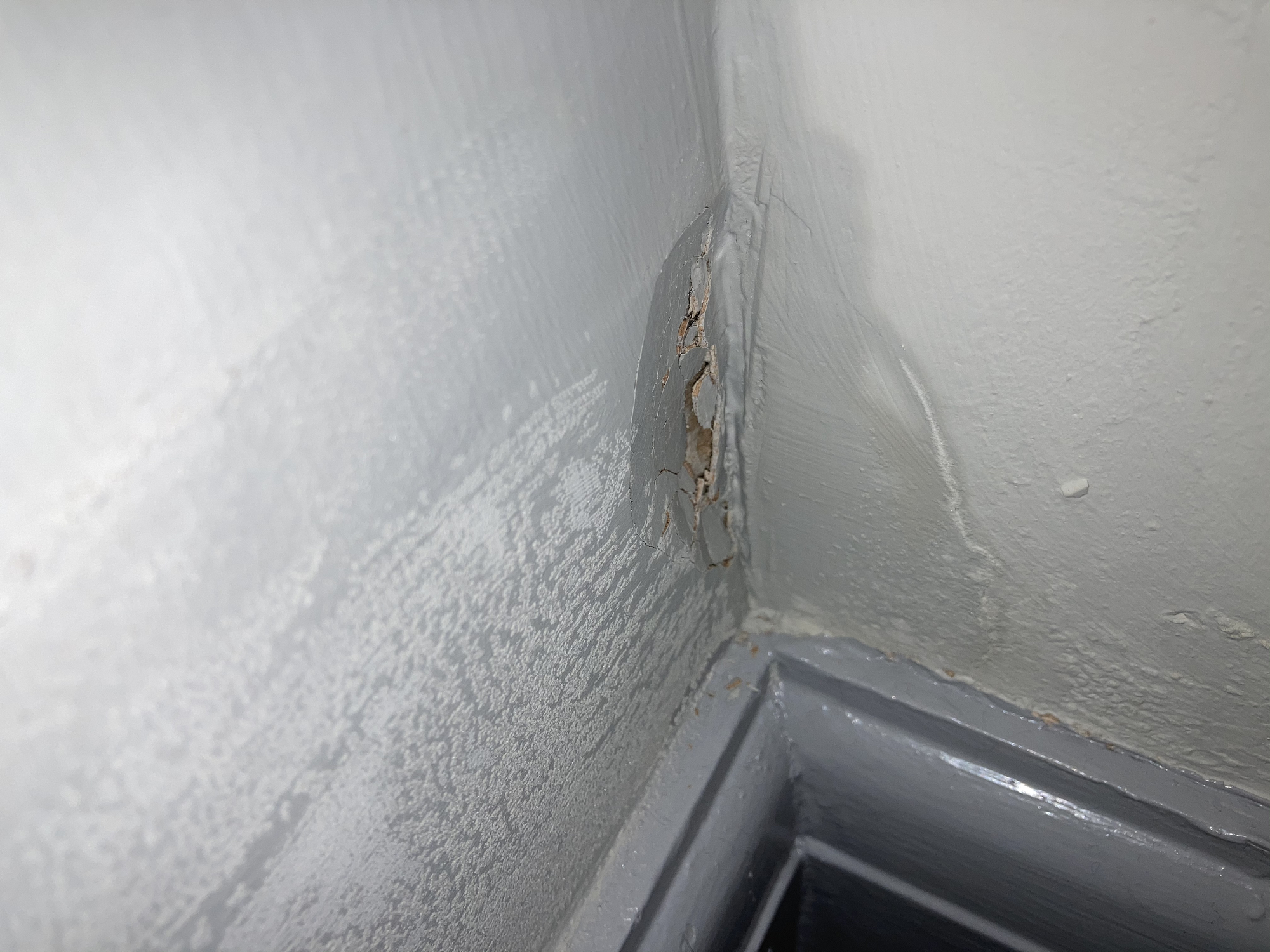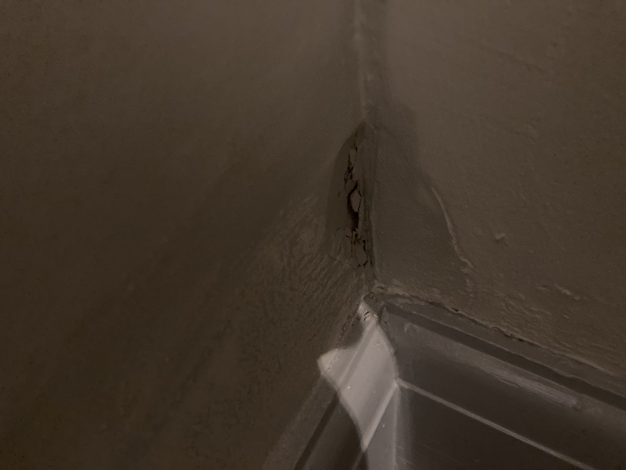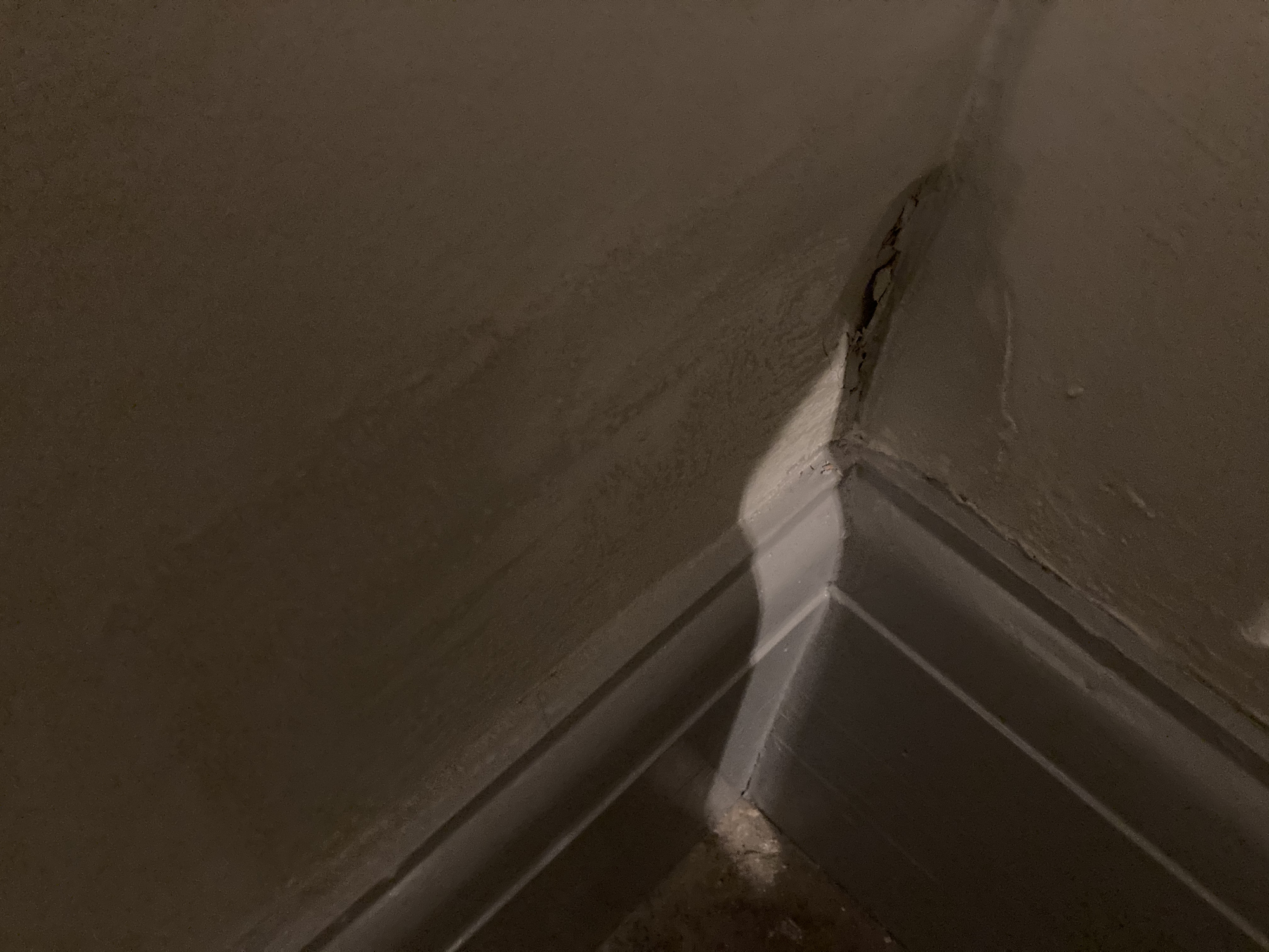I recently had the living room redecorated and I’ve noticed the spot where the new plaster is had sunk in and looked wet but didn’t feel damp. I poked it (bad idea, I know) and it’s just cracked and crumbled away.