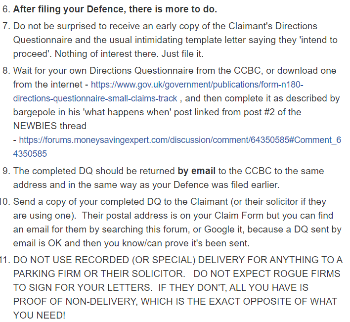 Damn, I've been using this link the whole time https://forums.moneysavingexpert.com/discussion/4816822/newbies-private-parking-ticket-old-or-new-read-these-faqs-first-thankyou . I couldn't see that information anywhere. Thanks for sending the photo!KeithP said:Devonisheaven11 said:I have found the online version of the Directions Questionaire on gov.com. Would you recommend printing and posting or is there any chance I can email the form to CCBC and the solicitors?
