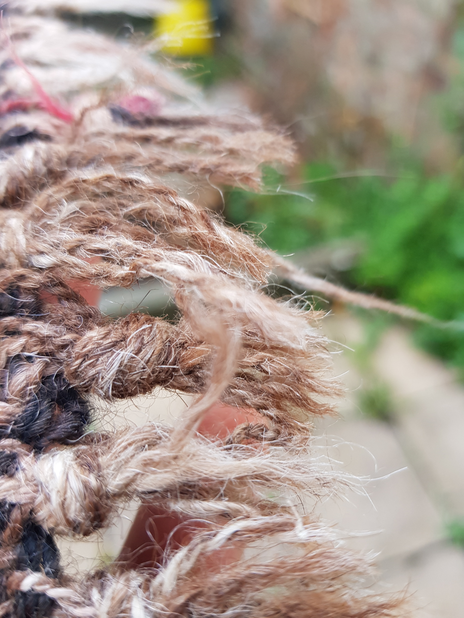It's a thin lightweight rug, so could fit in the washing machine. It's got a rough texture, and when I burn a strand it goes black and turns to dust and smells like hair...is this wool? See photos
