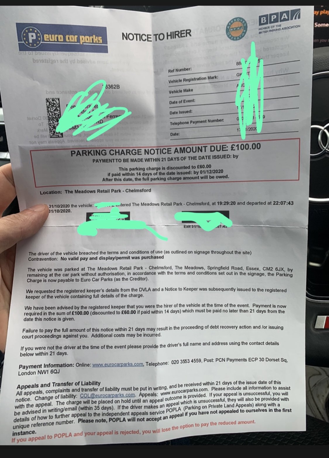 Parking Charge Notice [0123456789]: Vehicle Registration [AA11ABC]