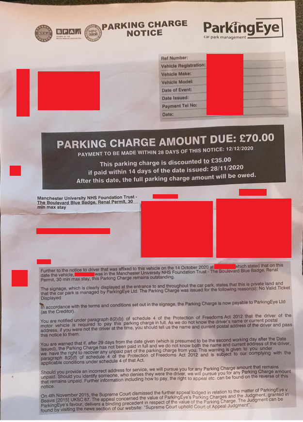 s**t happens - that's life!@mistyz No, I have not email PE at all. I emailed PALS. As of last night I have also emailed the Trust. The windscreen ticket date was 14/10/20, and yes, day 26 has come & gone.@coupon-mad. To clarify, No I have have not emailed PE. I have emailed PALS and the NHS Trust.Please see docs attached.
