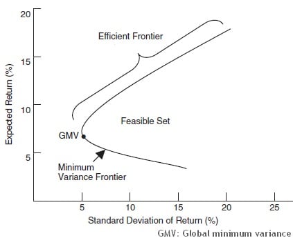 DairyQueen said:@Alexland: I didn't know that 80% was the optimum. I have variously read that it's 50/60/70. Are there any articles/sources that you could link? TIA.When mixing two asset types there is an optimum point for stability but most people would want to look at the efficient frontier range to achieve a better return within an acceptable range of volatility. Obviously the more equities you have the greater the long term return is expected but it gets to a point, which is a matter of judgement, where the extra return potential may not be worth the extra volatility. So in the example where your pot is much larger than you really need you might decide to go higher up the risk scale to say 80% while still keeping the remaining 15-20% reasonably accessible for spending during market lows as it would still be a lot of money and plenty in proportion to your spending needs.