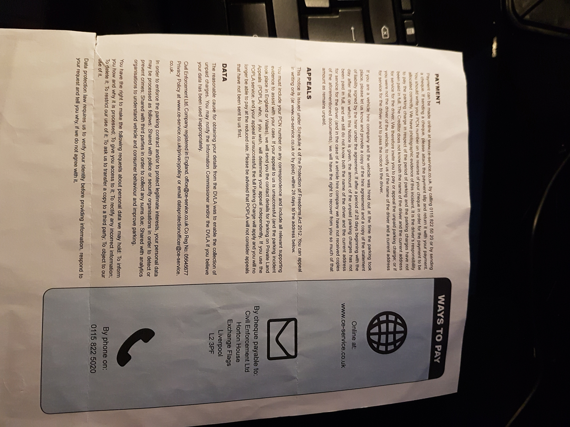Coupon-mad said:You don't appear to have compared the wording to the POFA. You haven't mentioned doing a 'spot the difference' check against Schedule 4 para 8 or 9.Can i post a picture of the PCN that was sent to me or is this not advised?The only thing i can think of is they haven't done this.(b)inform the keeper that the driver is required to pay parking charges in respect of the specified period of parking and that the parking charges have not been paid in full;It has my name and address at the top but just says We therefore require payment of this Parking Charge Notice, in accordance with the parking terms and conditions clearly stated on the signage.Only on the back of the PCN does it say that if im not the driver i have to notify them who it is so not sure if this counts. Its in a smaller font.