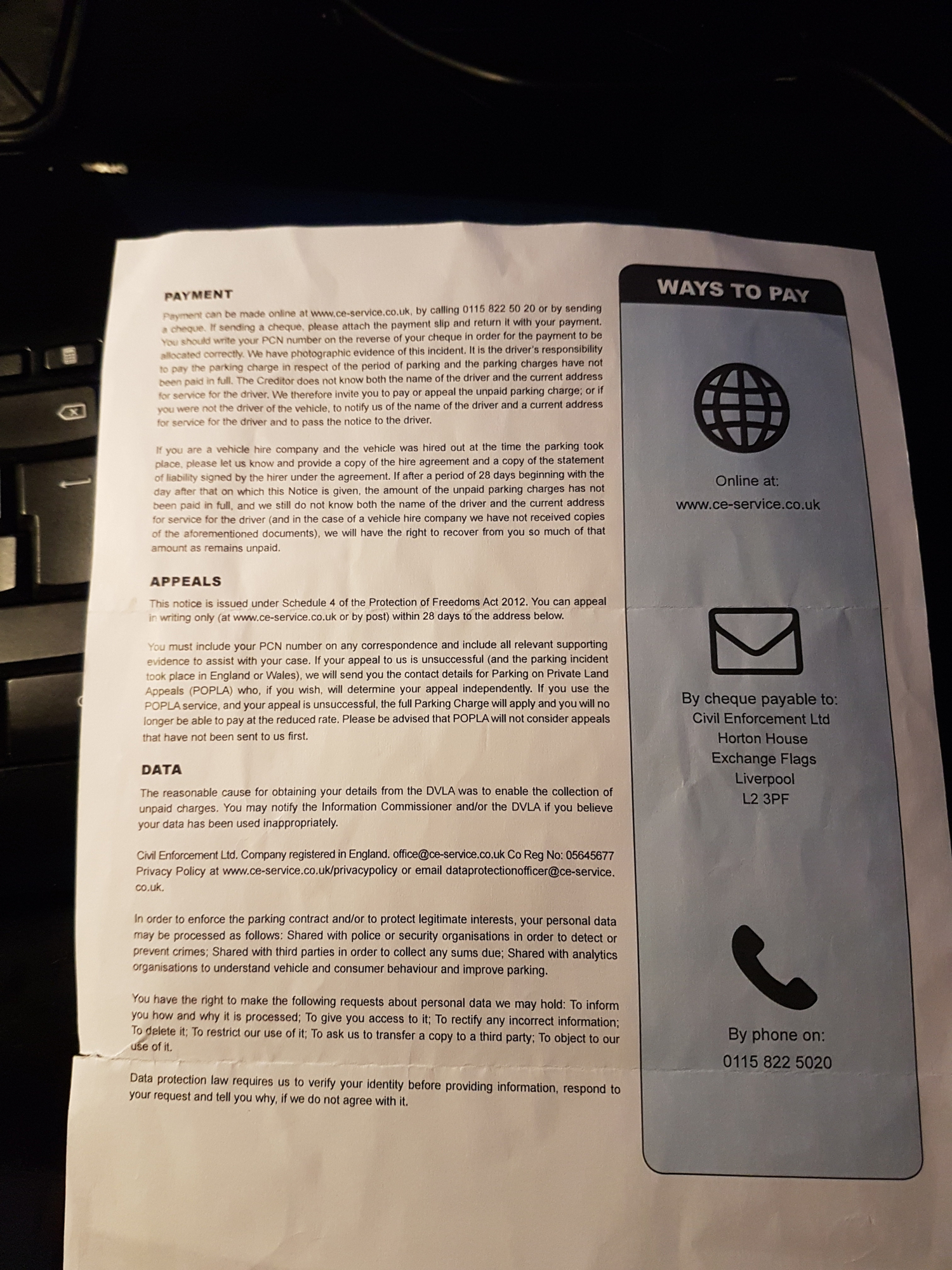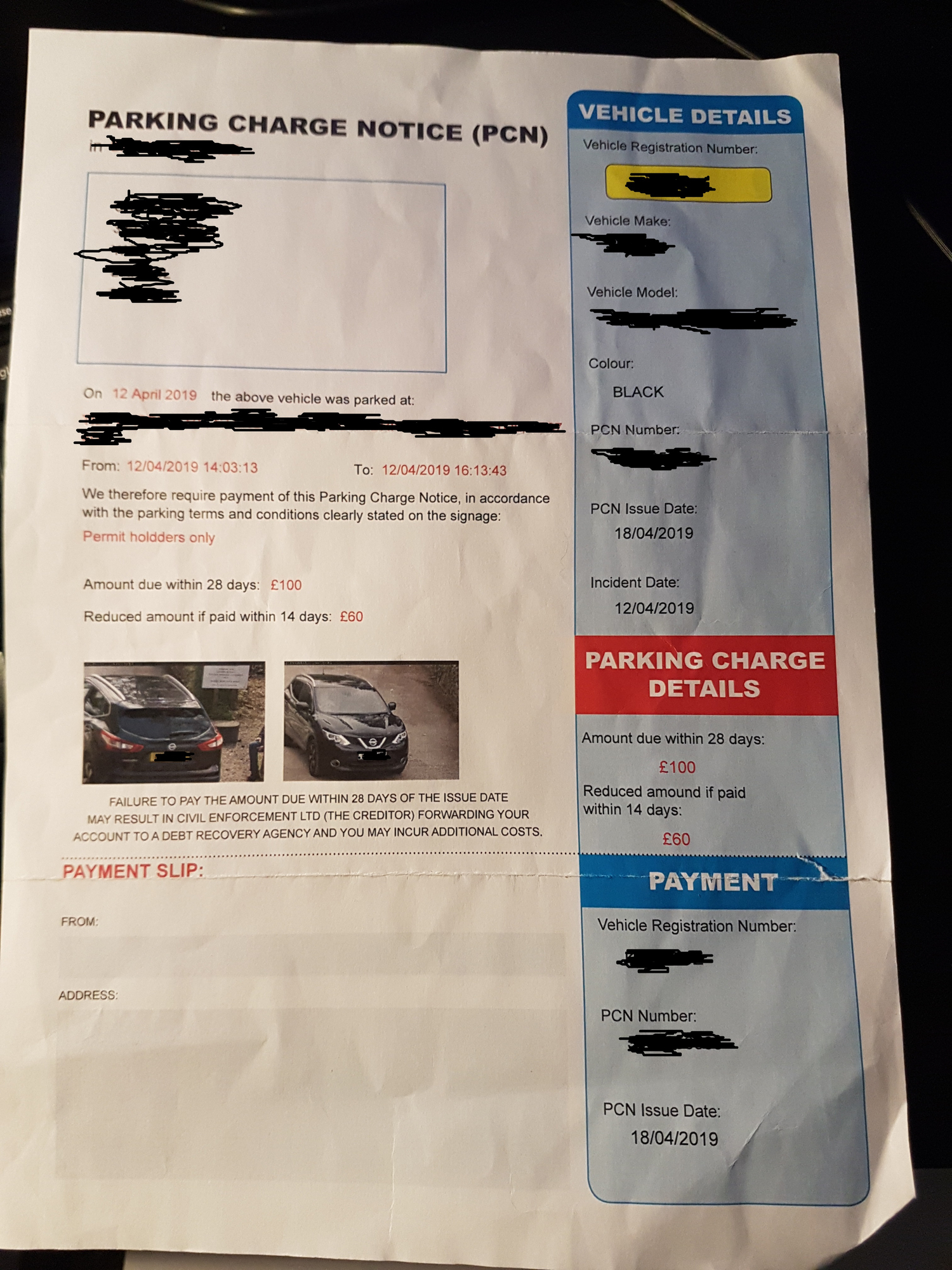 Post pictures of both sides of the first postal NTK but redact your name ,address , PCN reference number , VRM details and any other personal data or identifiers