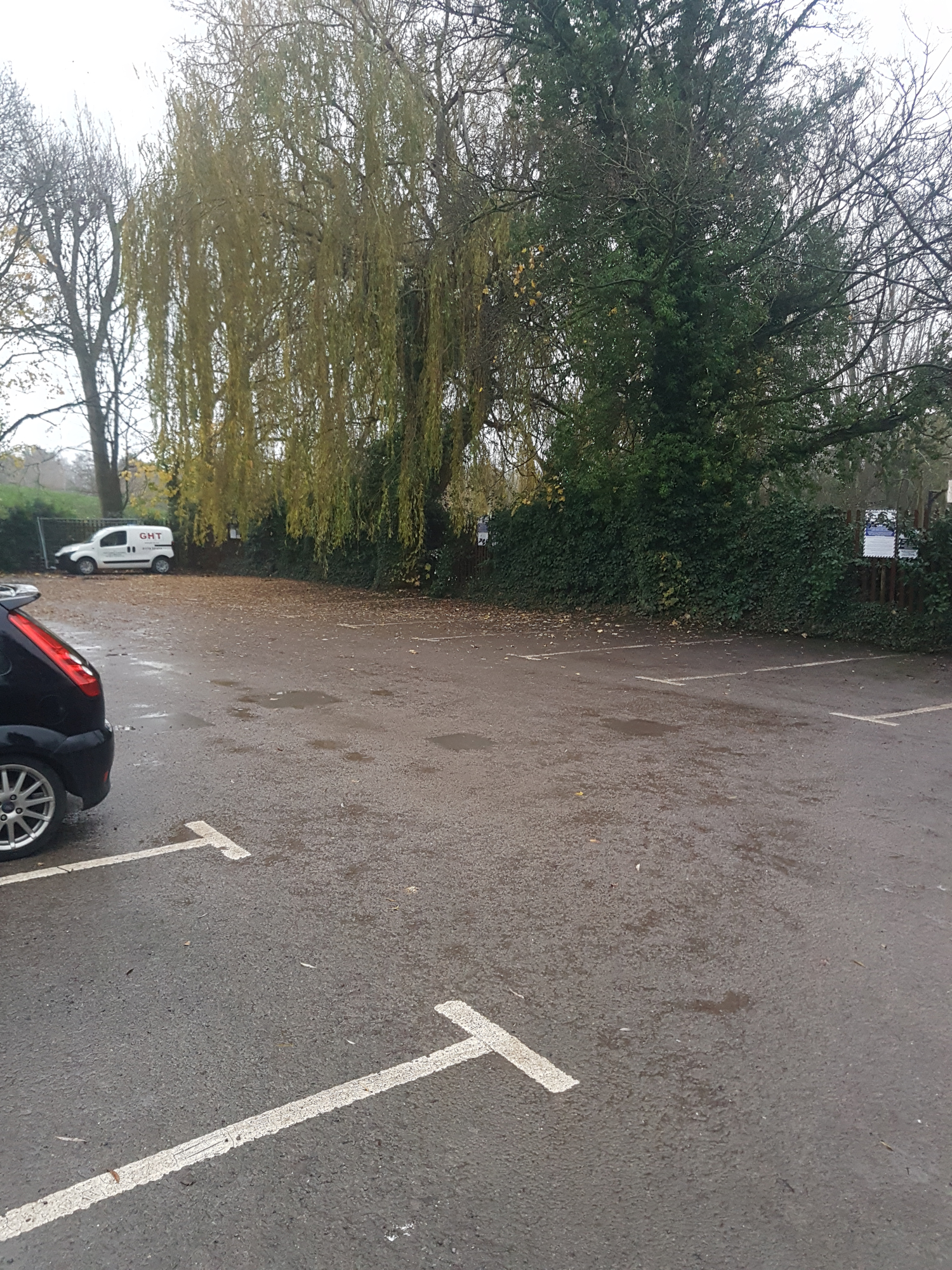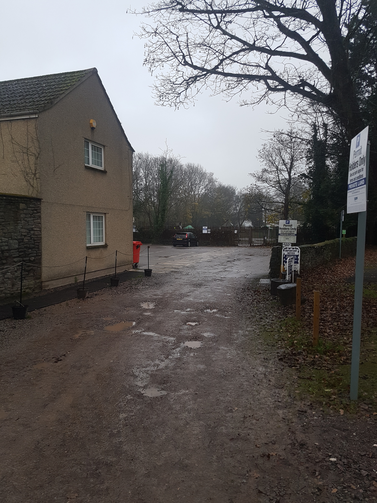This can be seen on the left hand side as you drive out of the car park. It cannot be seen as you drive in.