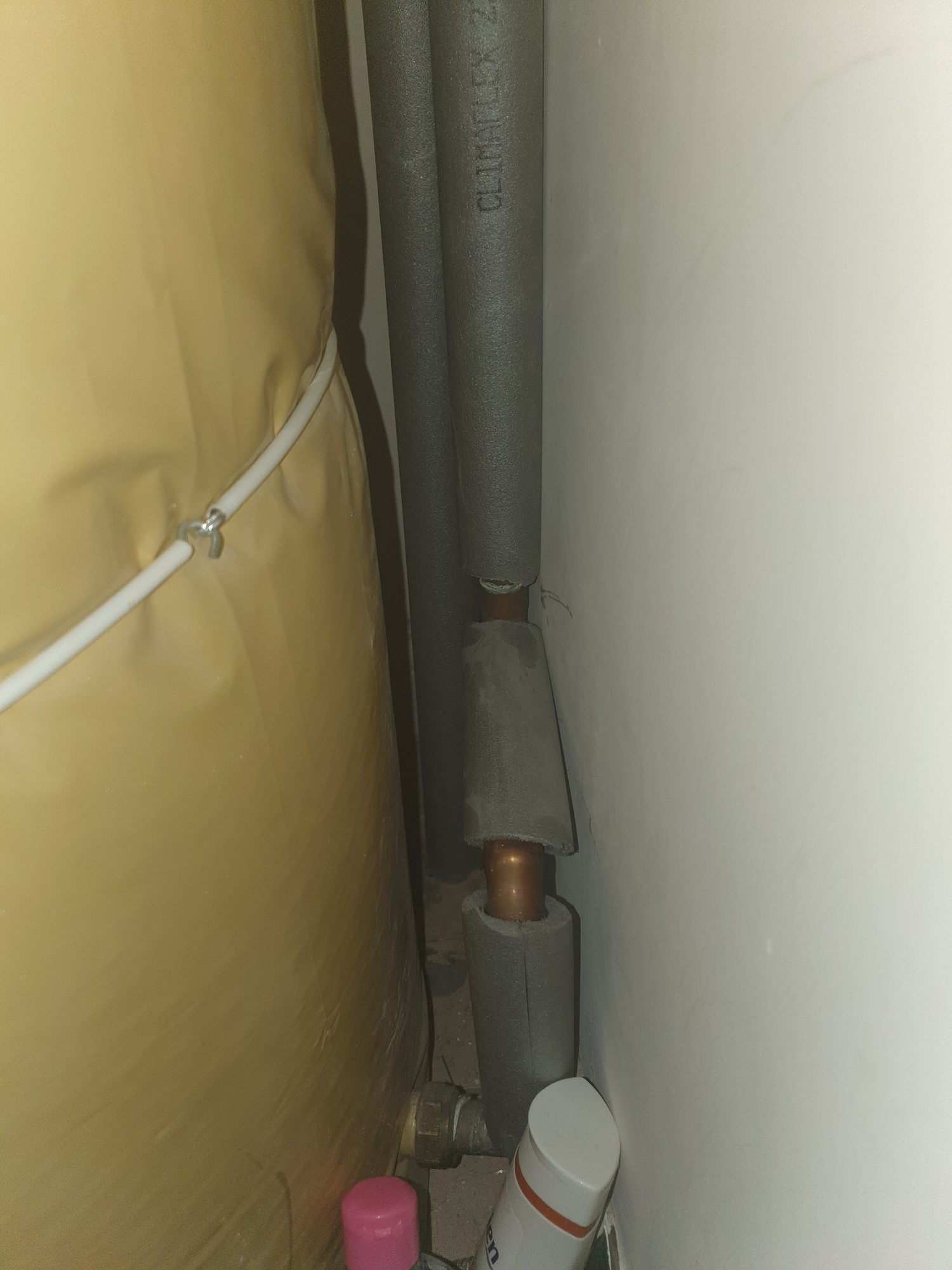 Alter_ego said:a small header tank would confirm but I think it's vented.A small tank is for heating. For a vented cylinder it's just a vent pipe over a big tank.And that's the pipe on the photo at the very top of the cylinder. After a tee it splits into two pipes. One of them goes up to the loft as a vent pipe.
