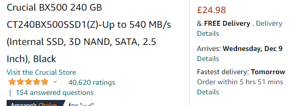 Really?Terrysdelight said:I was going with the Crucial but delivery is not until 29th December so have opted for the Kingston. The feedback on this product is very good.