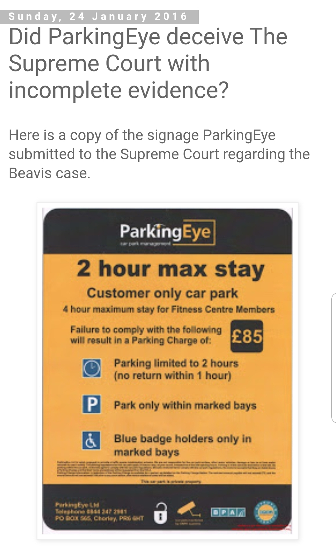 Here is a copy of the signage ParkingEye submitted to the Supreme Court regarding the Beavis case.