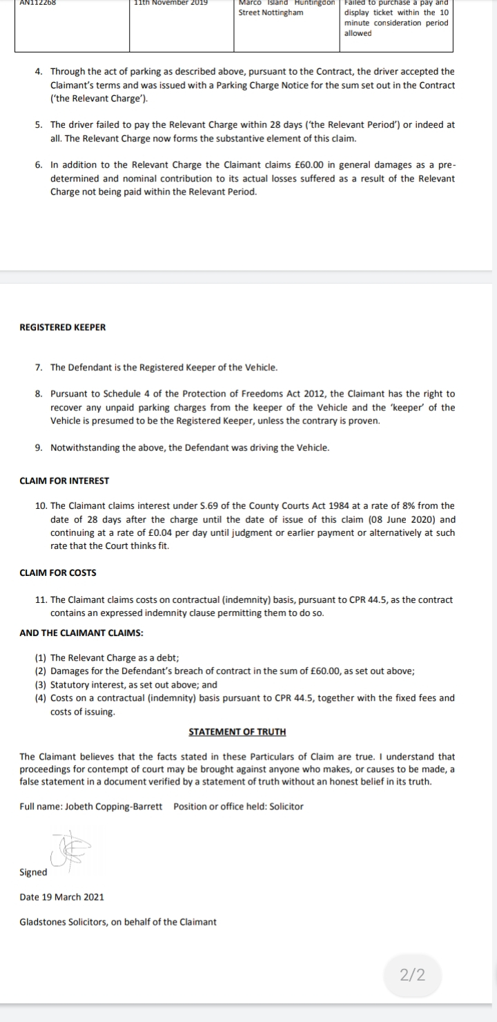 And a solicitor can sign off POC but I still feel the wording of the statement of truth negates it as a statement. She should say ''I believe''.PRIVATE 'PCN'? DON'T PAY BUT DON'T IGNORE IT (except N.Ireland).