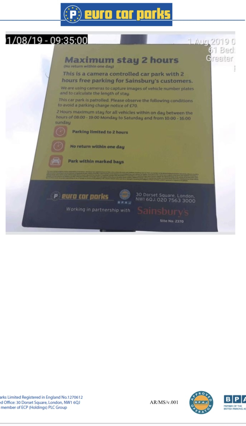 ''No return within one day''? What, Sainsburys are you mad?PRIVATE 'PCN'? DON'T PAY BUT DON'T IGNORE IT (except N.Ireland).