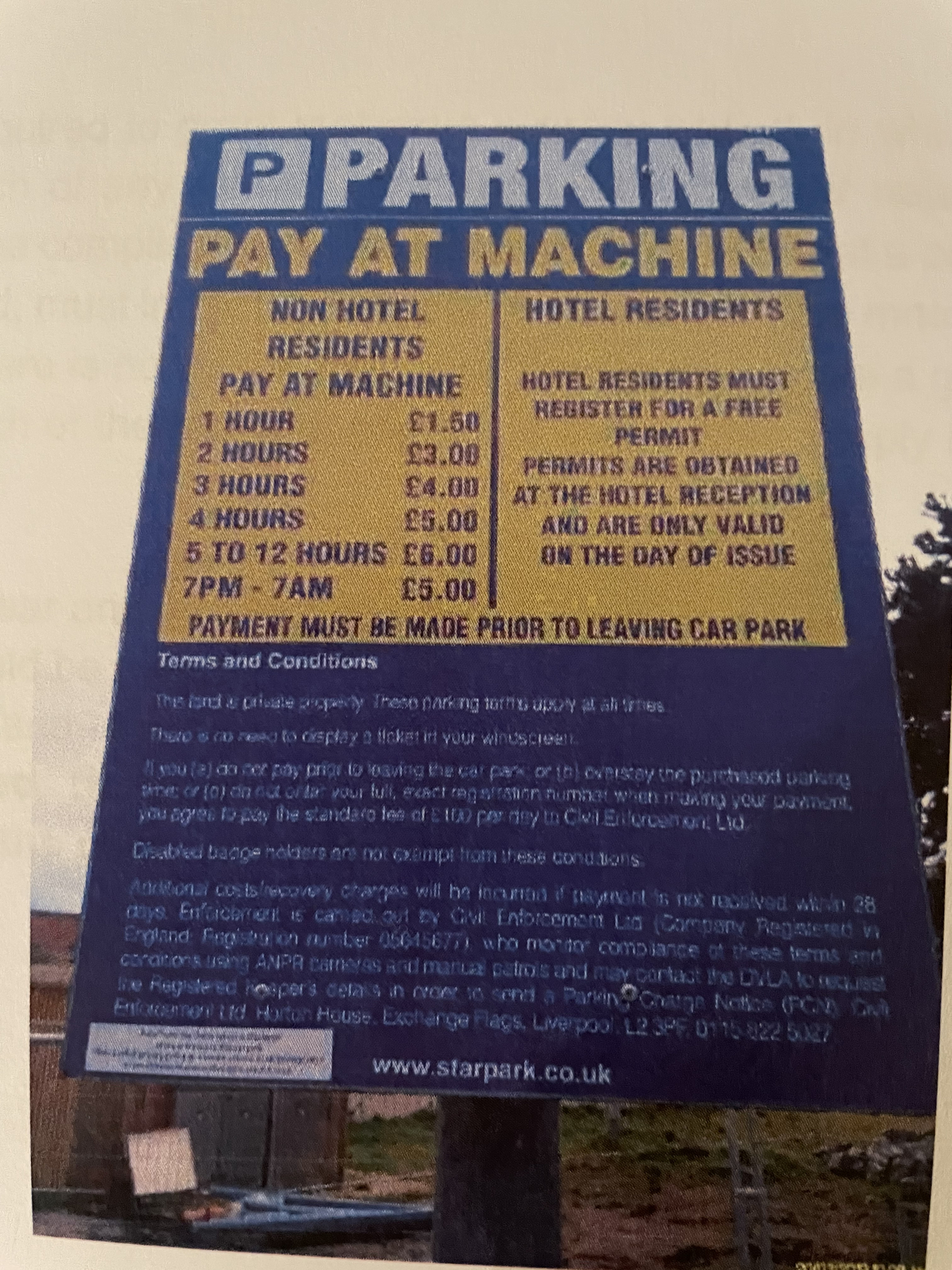 4. There was misleading signage with confusing terms in the car park when compared to the assertions by the Claimant, which is a breach of the Consumer Rights Act 2015.