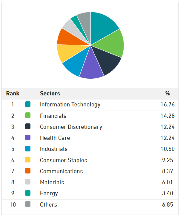 BuildTheWall said:When you say UK equities, are they heavy on FTSE 100?Stealing some nice charts from Trustnet here: This is VLS 100So 25% UK when the UK is about 4% of the world's equity. Yes they are overweight UK. But alsoThey were low in tech, which is how they missed a lot of the gains from being in the US market.Some would argue that tech has already achieved a lot of its gains, and that Financials / Consumer Discretionary / Health Care are great sectors to be in for the coming year. So VLS equities might do considerably better in the coming year.That's what some would say. I have no idea.0