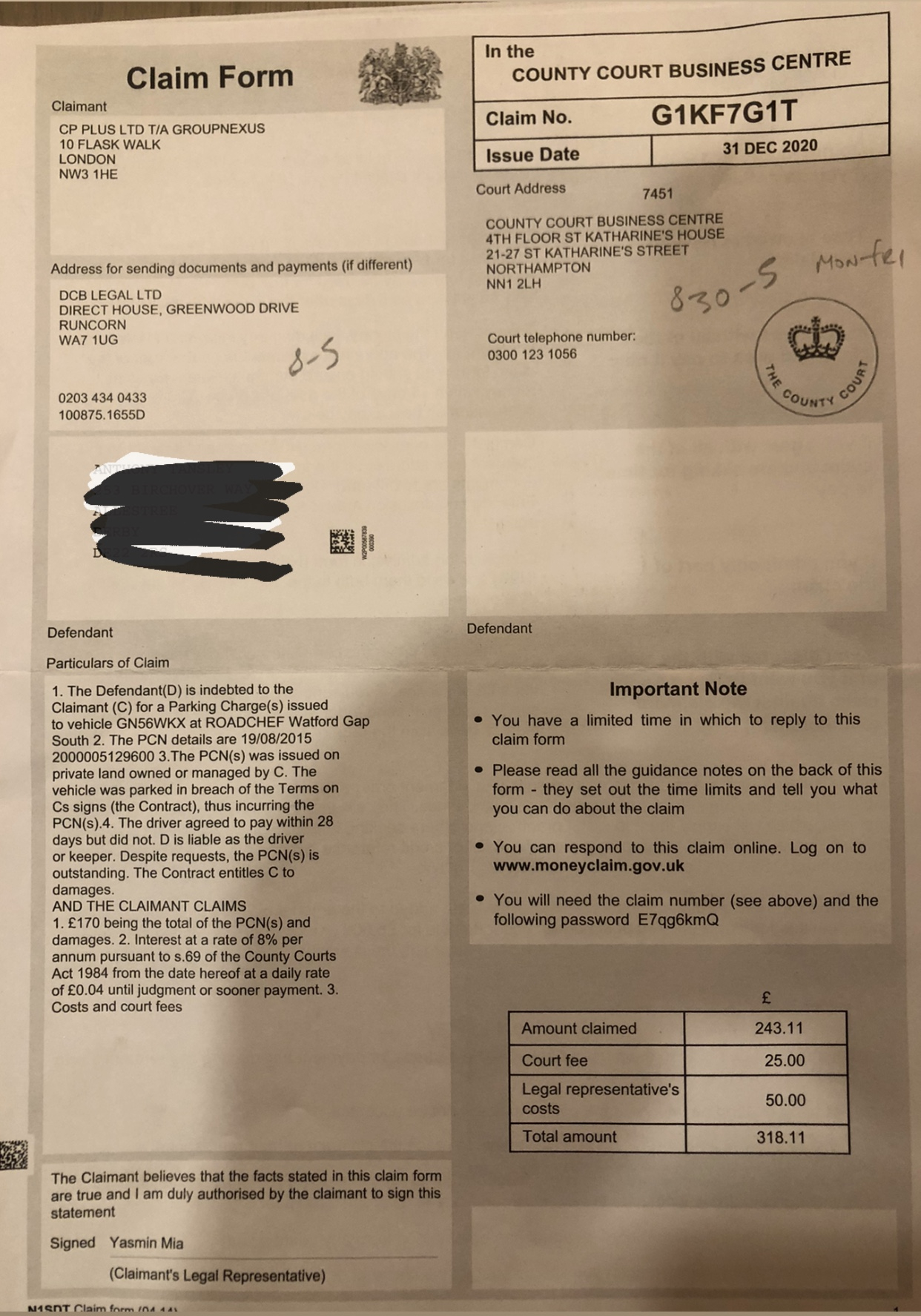 With the both the Claim Number, your vehicle reg.no. and your MCOL password visible untold damage can be done.