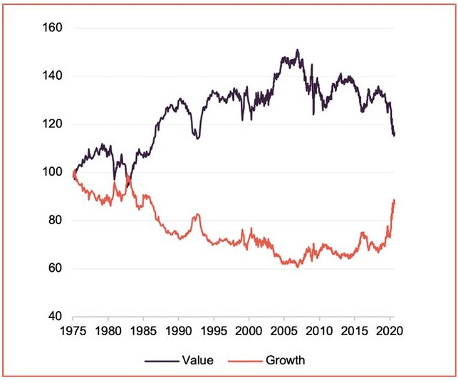 MichelleN said:Regarding the RL fund, I don’t think the OCF really puts investors off, in my opinion it is a really good fund that only invests in well established companies and its results over 1, 3, 5 and 10 years are better than CTY or MUT.Yes that's because according to Morningstar X-Ray it's 38% weighted to growth, which over the past decade was the right place to be (until we saw the recent style rotation for however long that lasts), compared to MUT at 25% and CTY at 8%. The below images (from the Investment Trust Handbook 2021) of the relative performance of value versus growth might help explain. You can see why boards ran out of patience and started to pull the plug on value managers like Mark Barnett for accelerating poor performance during 2019.