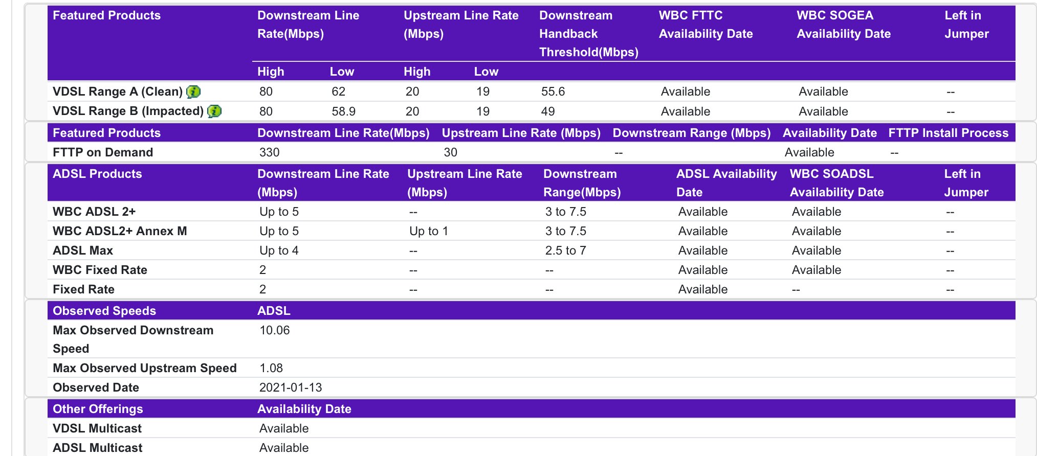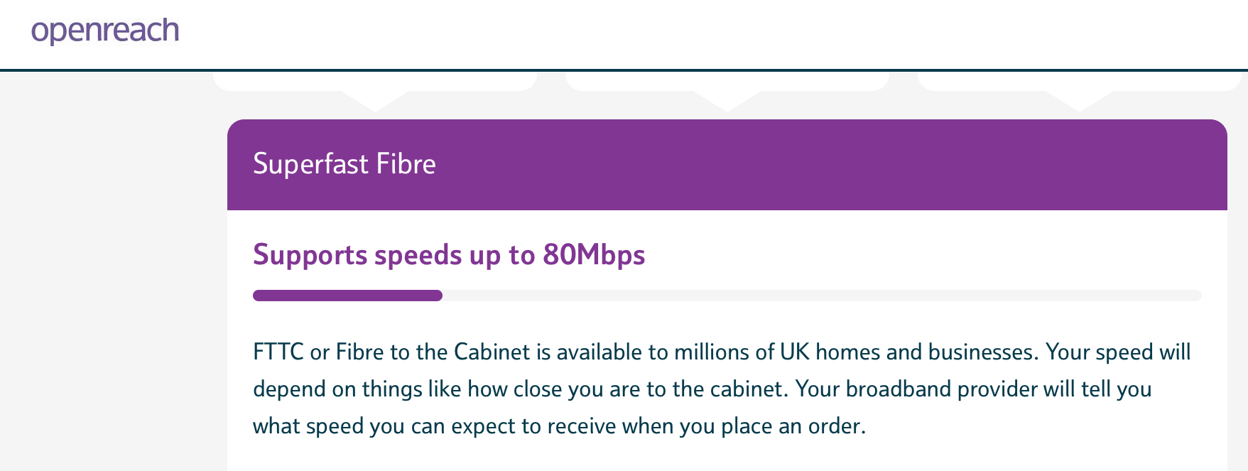 Thanks again Zellah. So I’ve put their postcode/address into the Openreach website and the FTTC result is shown below. Good news I think. As you say, potentially 80Mbps. And I assume, therefore, that FTTC means that the line from the cabinet/pole to their property remains the same, so little or no internal disruption?