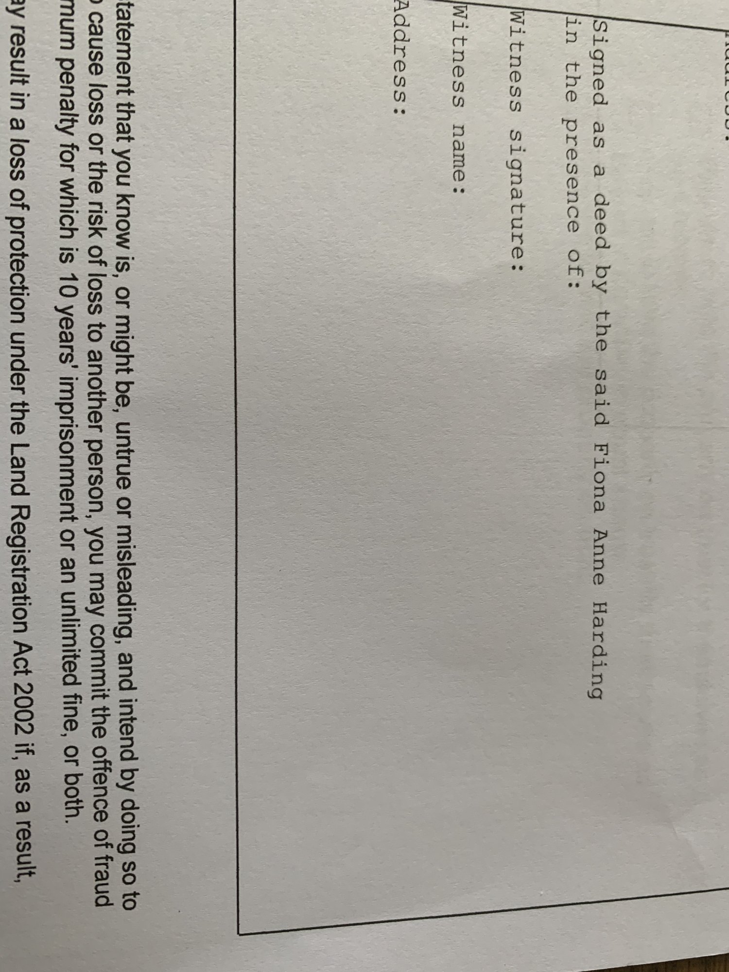 Can anyone help, just about to sign my TR1 form to transfer the title and can’t work out if I should sign in the gap after my name or in the gap after ‘in the presence of:’