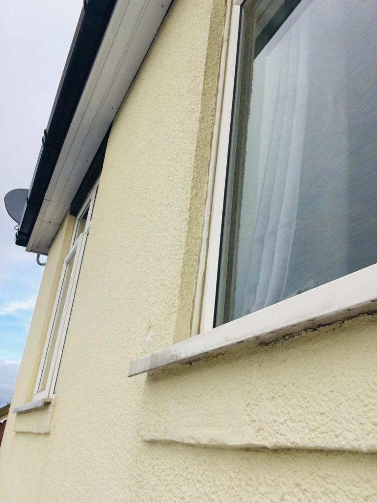 Thanks for the photos.I'm hoping someone will come up with possible causes, shu, as I'm out of my depth here.That small 'filled' bit to the LH side of the window just above sill height - that couldn't possibly be a blocked drain?0