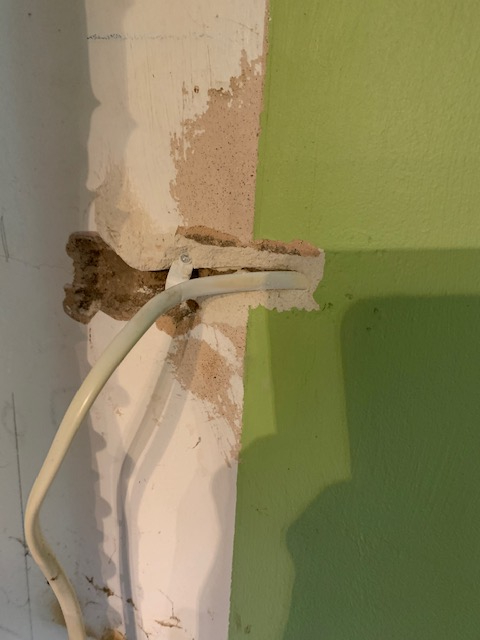 Sadly, that old wire isn't budging, but I was able to expose the channel enough to perhaps bring out the cable from a new one from behind the chimney and run it on the wall across to the top of the kitchen cabinet behind some trunking, at least as a stop gap.