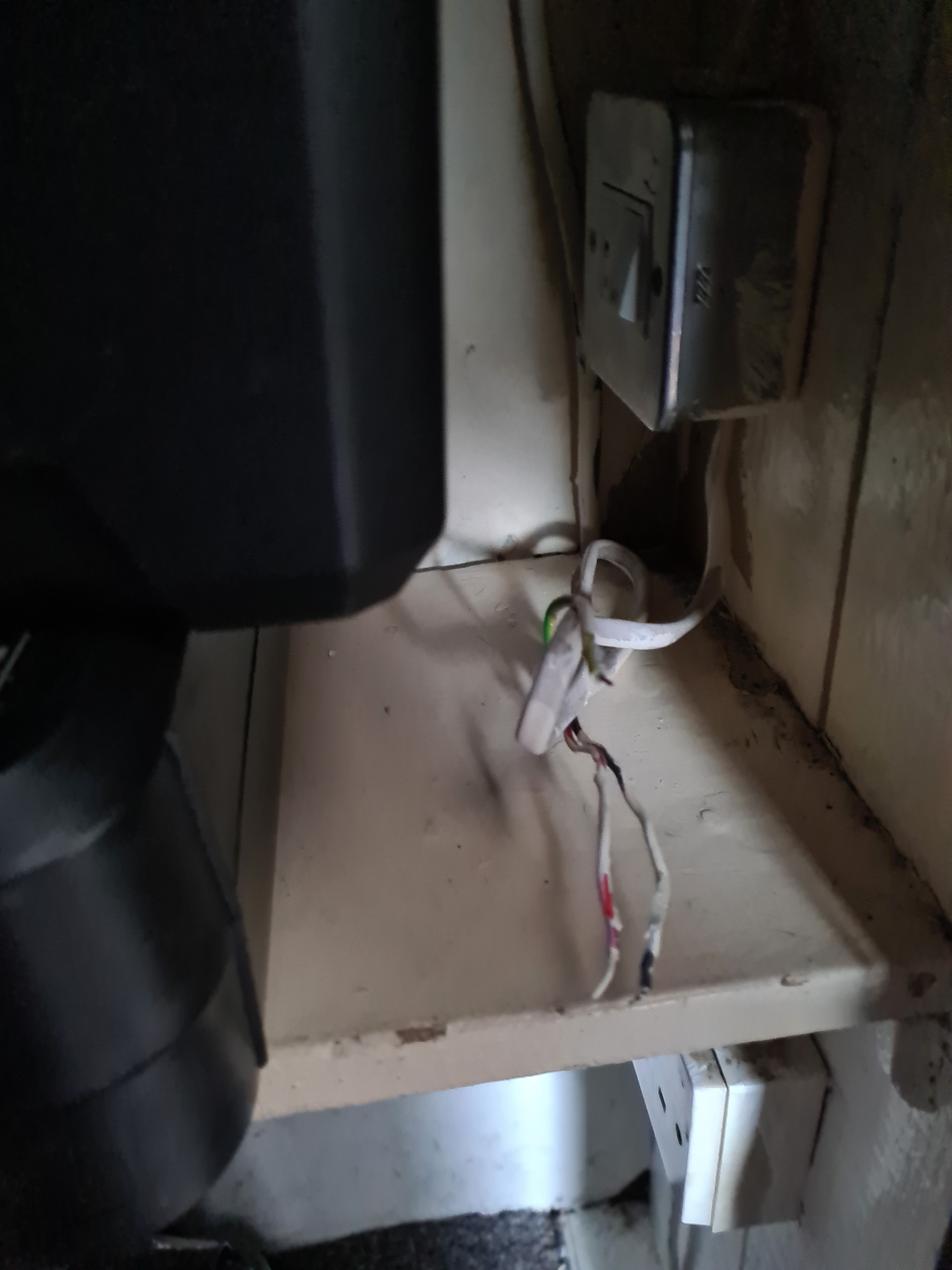 The under cupboard light socket kept tripping whenever I tried to switch a bulb on and while there, there were loose cables which he tested to be dead but worth just removing (see pics)
