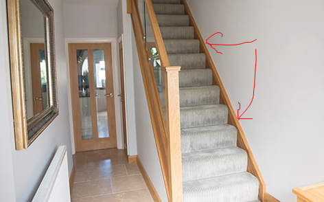 anyway, no, I refer to the wood at each side. I do not know what the trade name is, but imagine looking up the carpeted stairs, each side on left and right of the carpet is painted wood - white in our case - going up on a diagonal. Here in this pic it is brown wood (stained?) the red arrows - but it is on both sides