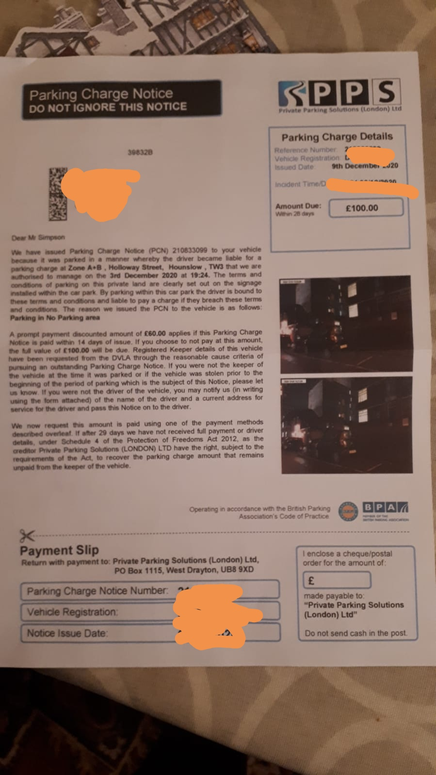 Yes I guess it was for failure to display a permit. From the evidence pictures they it looks like someone took pictures on their phone. My argument is that the driver wasn't parked and the time spent there was less that 10 mins. I'm using black box telemetric data as evidence.Coupon-mad said:The Code of Practice from Jan 2020 doesn't allow a ten minute consideration period plus a ten minute grace period.