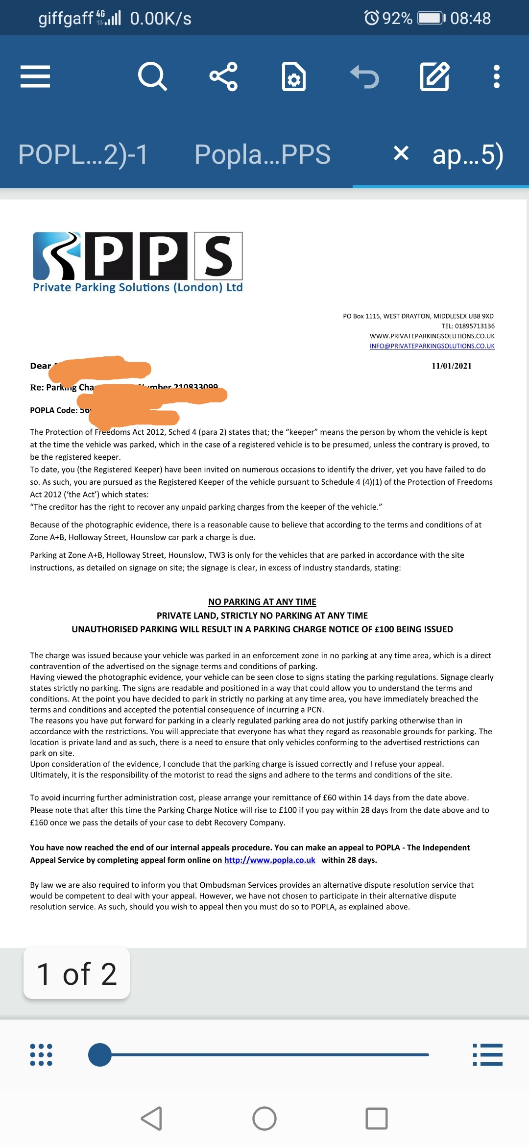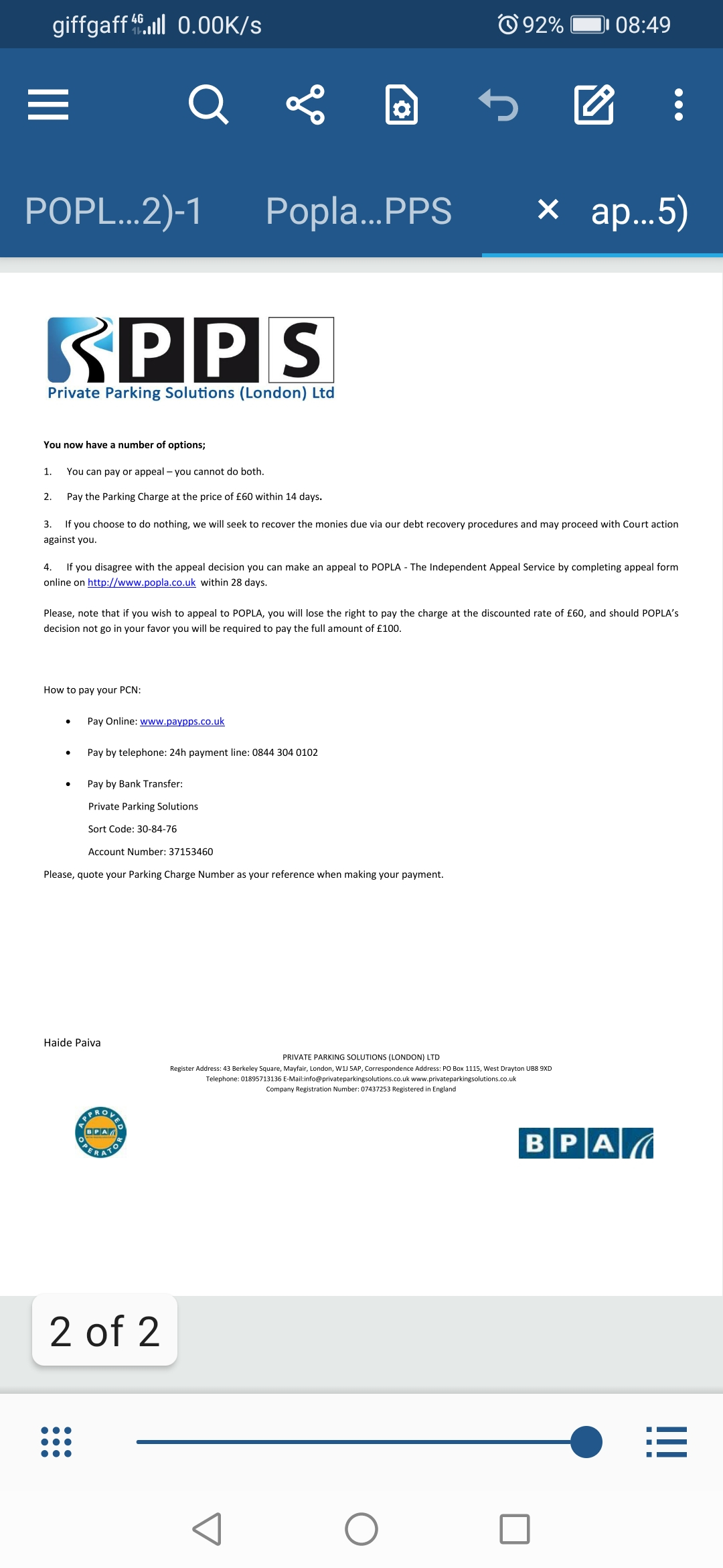 That would be the chancers.1505grandad said:To confirm, is the ppc is:-?Private Parking Solutions (London) Limited http://www.privateparkingsolutions.co.uk