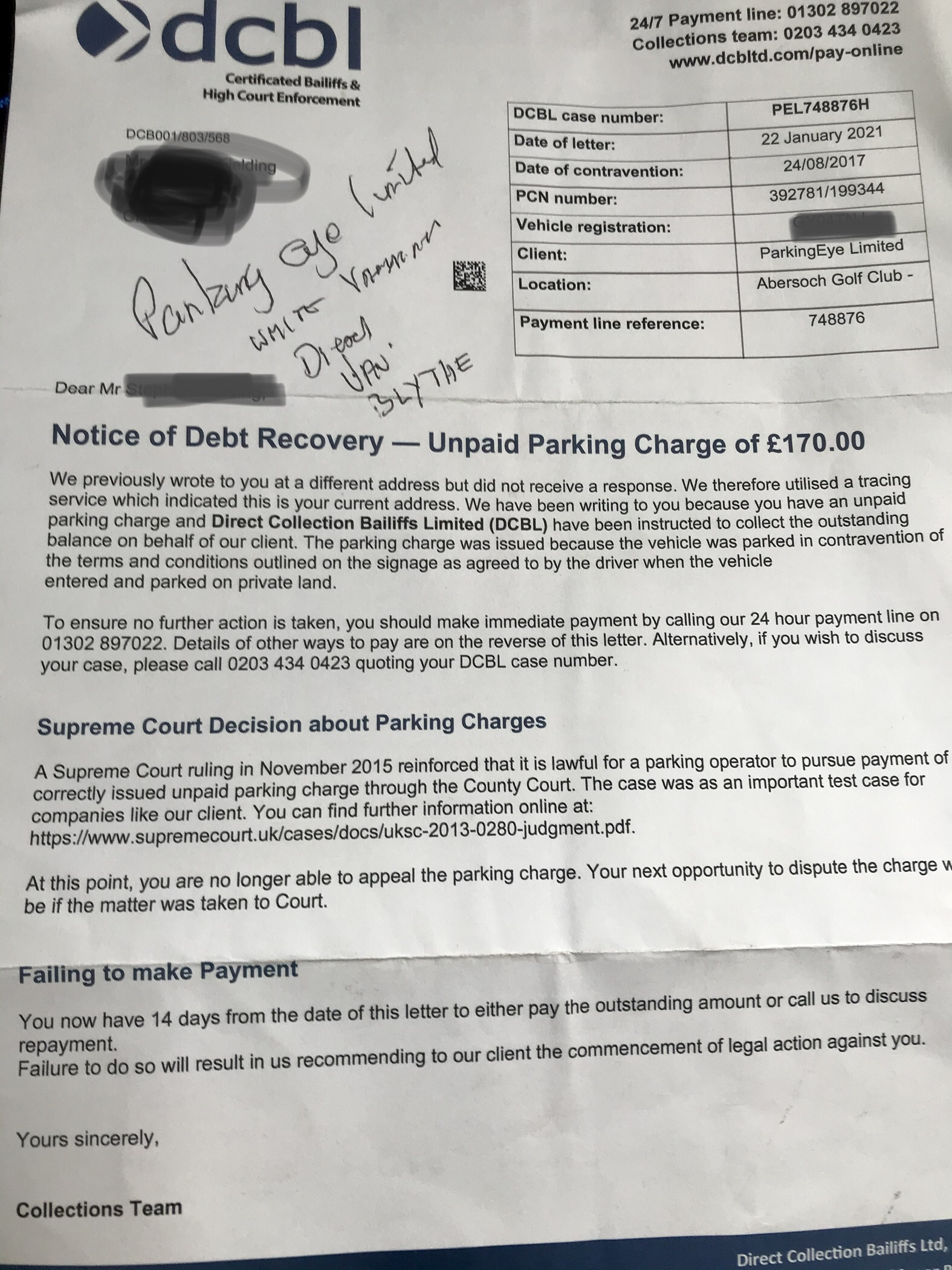 Abersoch Golf Club have had loads of complaints over the years about ParkingEye. Add to them.