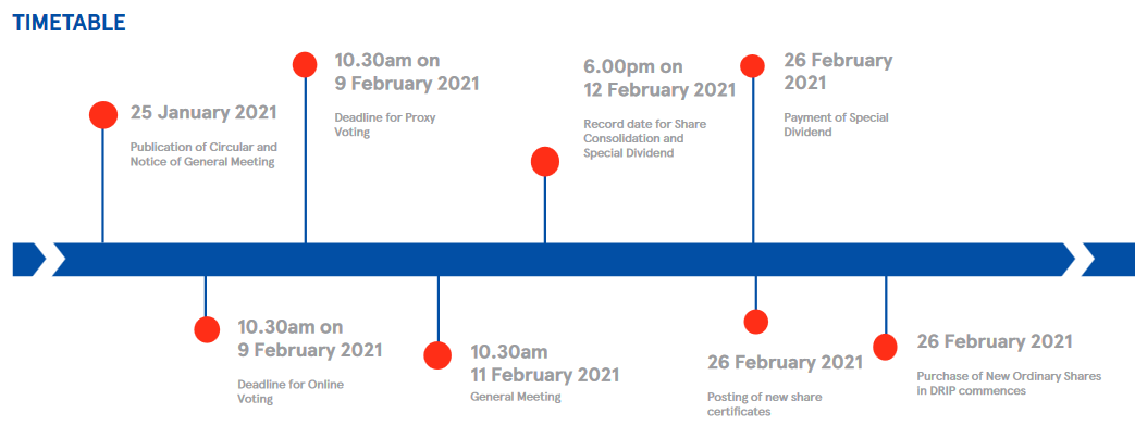 The company gave you it's cash the £5bn out of its own bank account and put it into the pockets of the shareholders including yourself. The shareholders now have cash, but the value of all their shares in the company, collectively, has dropped by the £5bn. Over the last month, the share price has bobbled around somewhere between 240-245p, and that was the sort of number the shareholders were familiar with. But if you took £5bn out of the company, each share of the company which was previously worth about 242p would drop in value by about 4/19ths, to be worth about 192 instead of 242p, while the investors had 50p in their pocket.