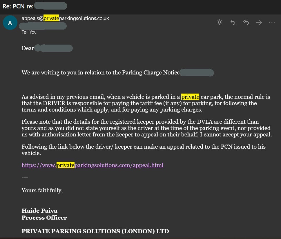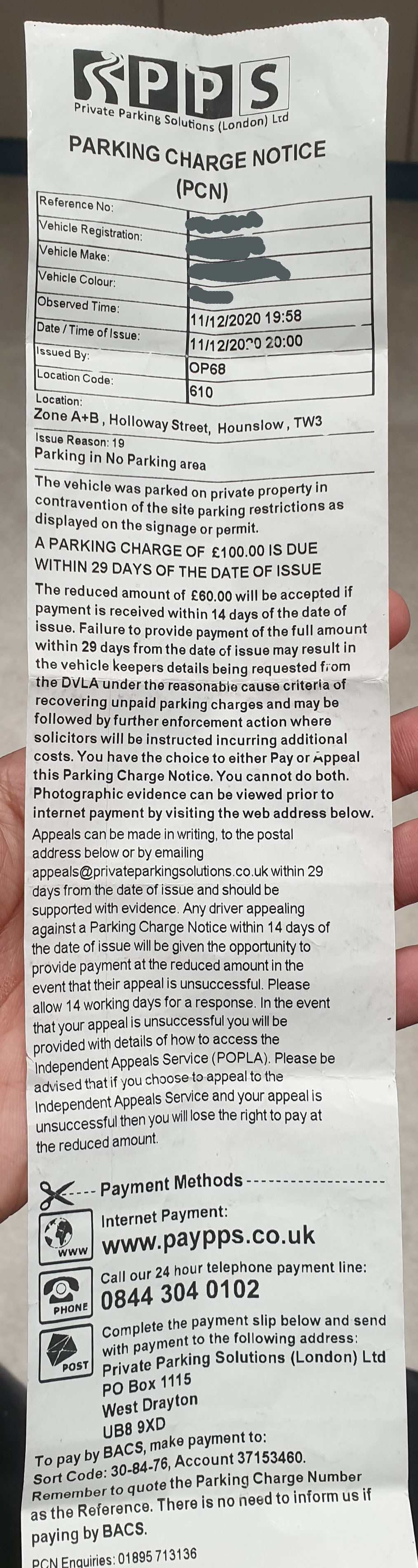 So essentially Private Parking Solutions gave a parking "ticket" as they say on the windscreen, with an observation time of 2 minutes before it was applied on to the windscreen. The vehicle is leased so essentially the owner/registered keeper is the lessee in the situation: