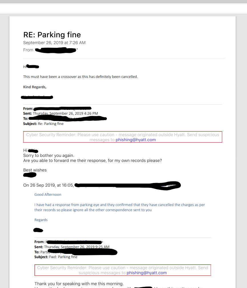 Upon receiving this letter, I immediately contacted the hotel via email. I received a reply from the manager who assured me this parking ticket was issued in error, and informed me that he would be liaising with Parkingeye to make sure the ticket was cancelled.