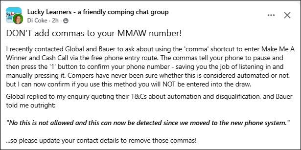 There didn’t seem to be a telephone number to call - I just entered by email address. That’s why I wondered if it was going to be a phone call after 5pm because I don’t recall giving my phone number.gdmoney said:Itsadogslife_2 said:So are the two comps, the Wednesday and the Friday draw next week on the same telephone numbers, or is there a different number for the Wednesday competition?