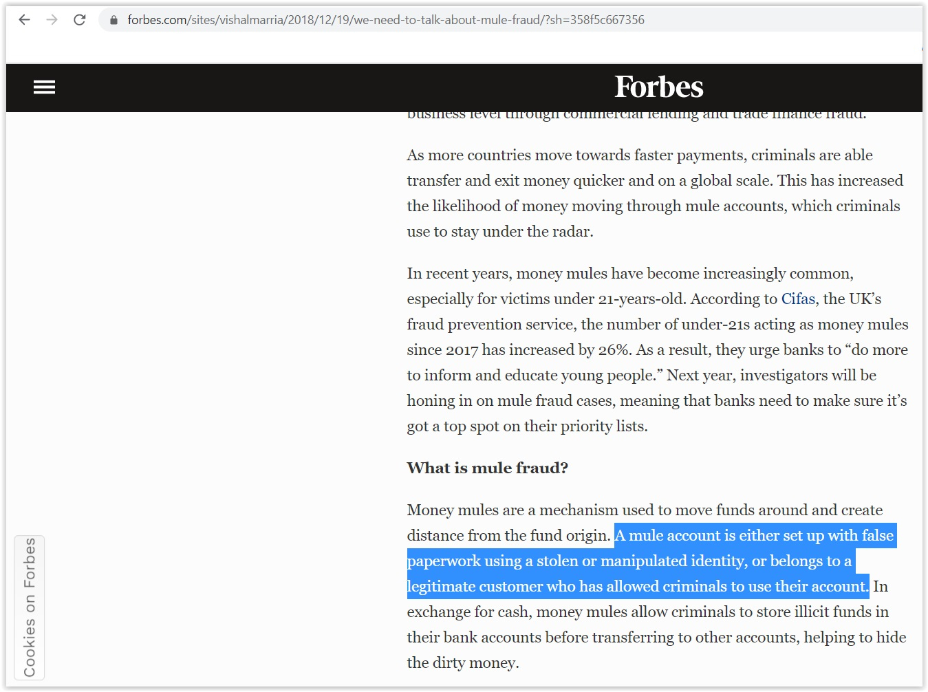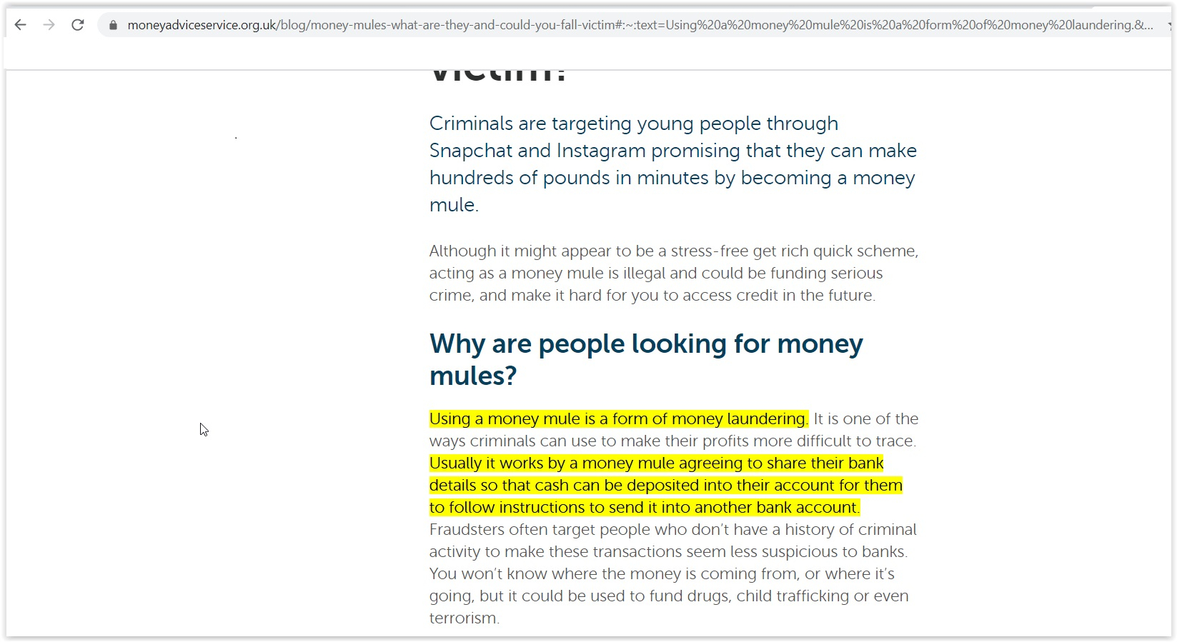 You are absolutely right but Martin Lewis and his staff appear to us the term as synonymous with "donor".colsten said:I can find just about not one single reference to mule accounts on the internet that does not point out the criminal connections of mule accounts.