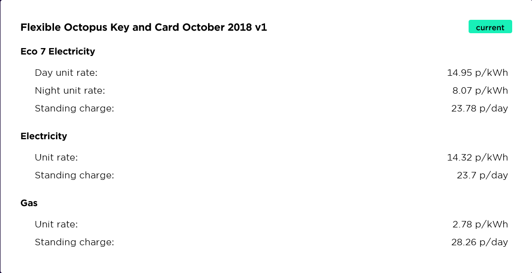 Gerry1 said:If dozy Ofgem were any good, they'd have mandated long ago that pre-payment shouldn't cost any more than a credit tariff. It's not as if the energy companies have to send someone round every month to collect the half crowns from the burgled meter; they get the money in advance and there's probably more risk from someone on a credit tariff running up a large debt and doing a moonlight flit.It's just plain wrong that responsible people desperately struggling to make ends meet and trying to avoid bill shock by limiting their consumption are hit by extortionate rates and daily charges.On the other-hand credit customers can pay by DD which doesn't involve having to pay intermediaries to handle cash payments made at corner grocery stores...Ofgem is not going to mandate equality if there are still differences in the cost base as they see that as a business decision.They already went about as far as they can by mandating that suppliers over 50,000 customers have to offer pre-pay as an option.In any event Octopus are not one of the suppliers that heavily loads the pre-pay rates anyway...Here is the variable tariff for Eastern region...
