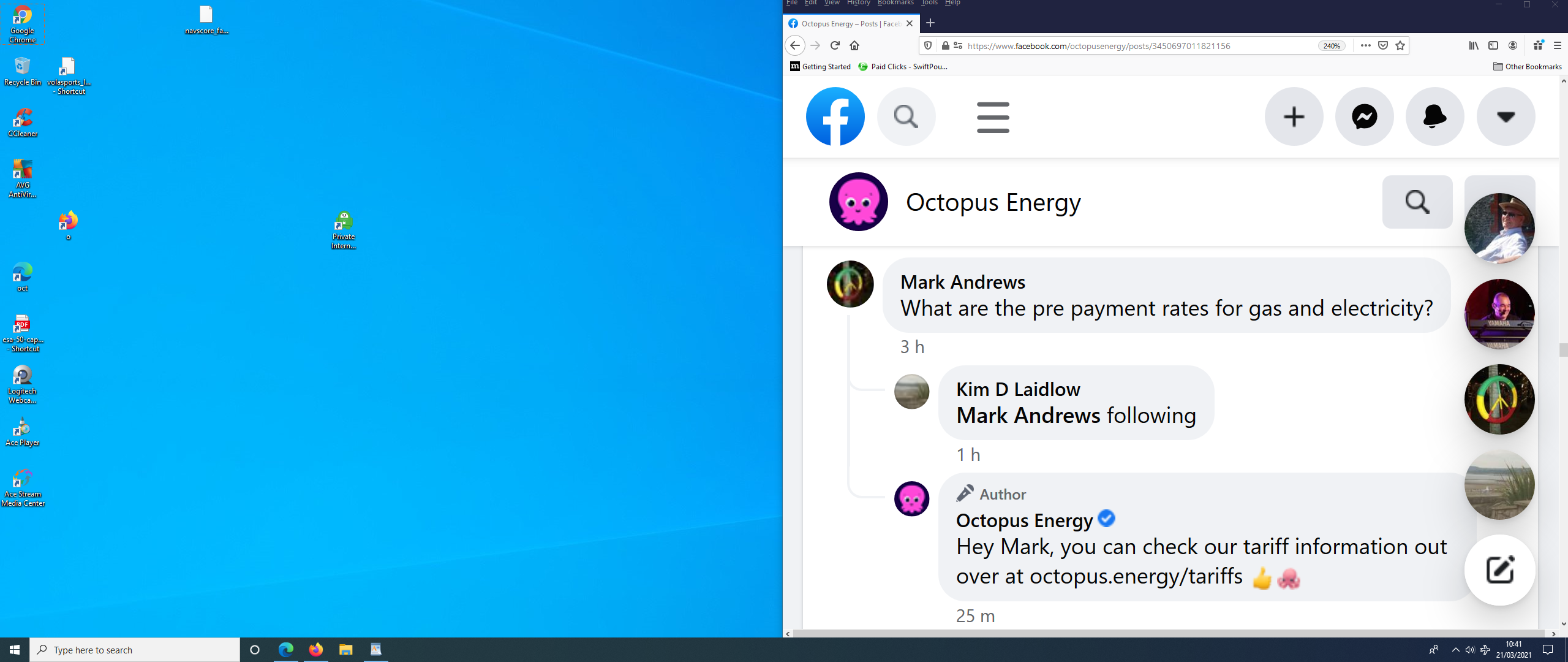 Plenty of people have commented on Facebook as a compliment to Octopus Energy over period of time, informed by Octopus agents that Octopus are not competitive for Prepayment meters, most the energy companies charge about same price for Prepayment, apparent cheaper exception being BulbFollowing up on this, yesterday Facebook friend mentioned to me she was interested in switching key and card prepayment to Octopus from Bulb, she fully aware that it is likely that Octopus will also increase variable tariffs in not too distant futureI sent Octopus a message asking were they aware that they do not show in results for prepayment via Uswitch when existing supplier is another company even when filter is ticked to show all tariffs including those cannot switch via Uswitch adding that Octopus prepayment tariffs do show when state existing supplier is Octopus this was reply :"Thanks for getting in touch and pointing that out. It does appear that the prepayment tariff is not one of those that is available through Uswitch, However prepayment tariff is non-competitive at the moment so if you wish to stay on prepayment you'll probably find a better deal elsewhere. If you are looking to join us on the prepayment tariff, I would be happy to provide a quote for you. Kind regards"My friend phoned Octopus this morning, switch to Octopus initiated, "Yeah I got through straight away and she didn't say anything like that to me, just that they can only offer 1 tariff and its variable" "Works out the same on electric as bulb b4 they rise prices but lots cheaper on gas so I'm happy for now"