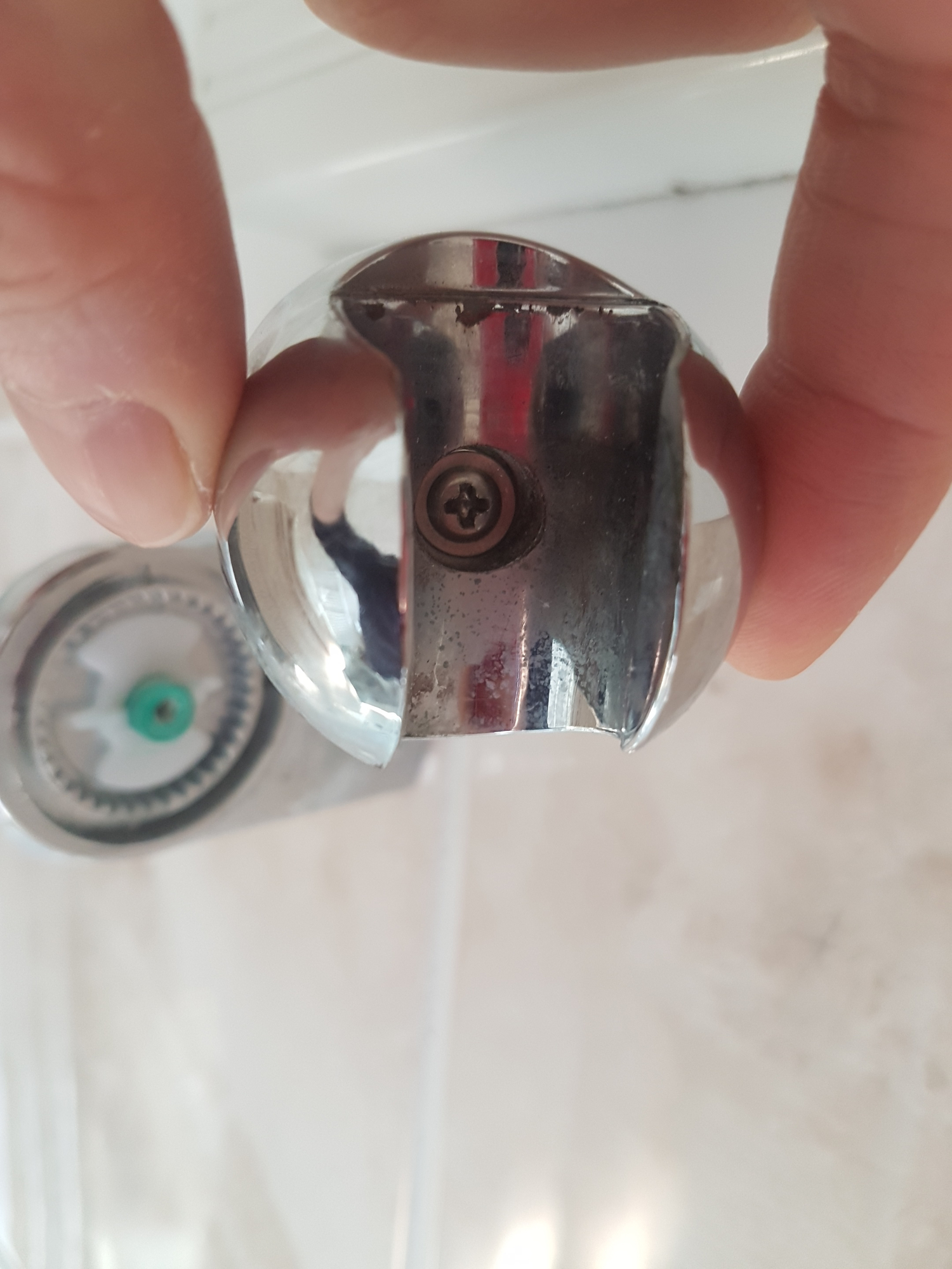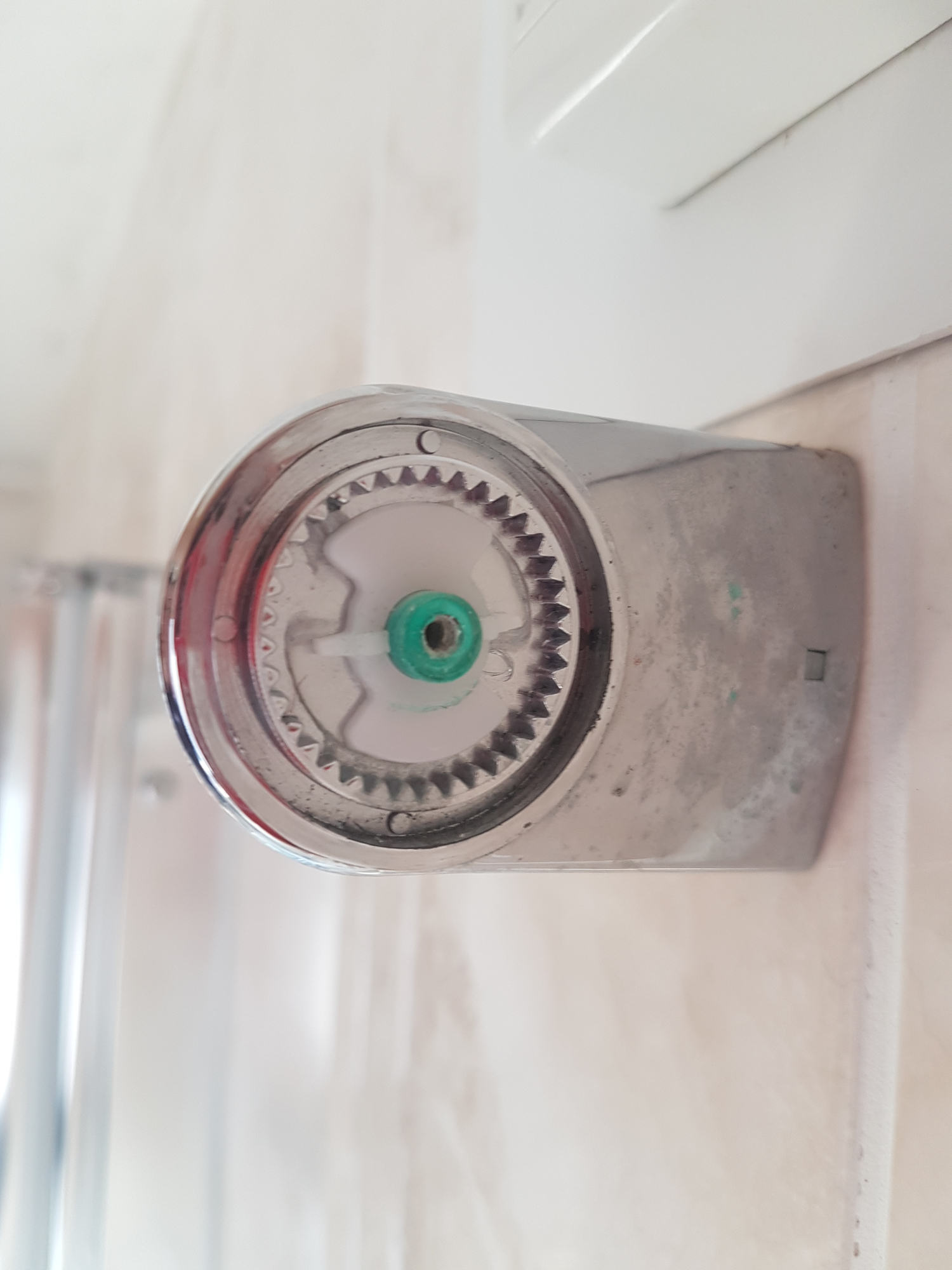 Can't get my head around that. As CH says, there's surely a piece missing - a springy toothed part, most likely also white plastic. Have you checked the floor...?Did this ever 'click' as you moved shower angle? Without that 'click' it'll surely not stay in position, but droop...? And the green central bit rotates independently of the surrounding white pieces?Make? Time to email the manufacturers!1