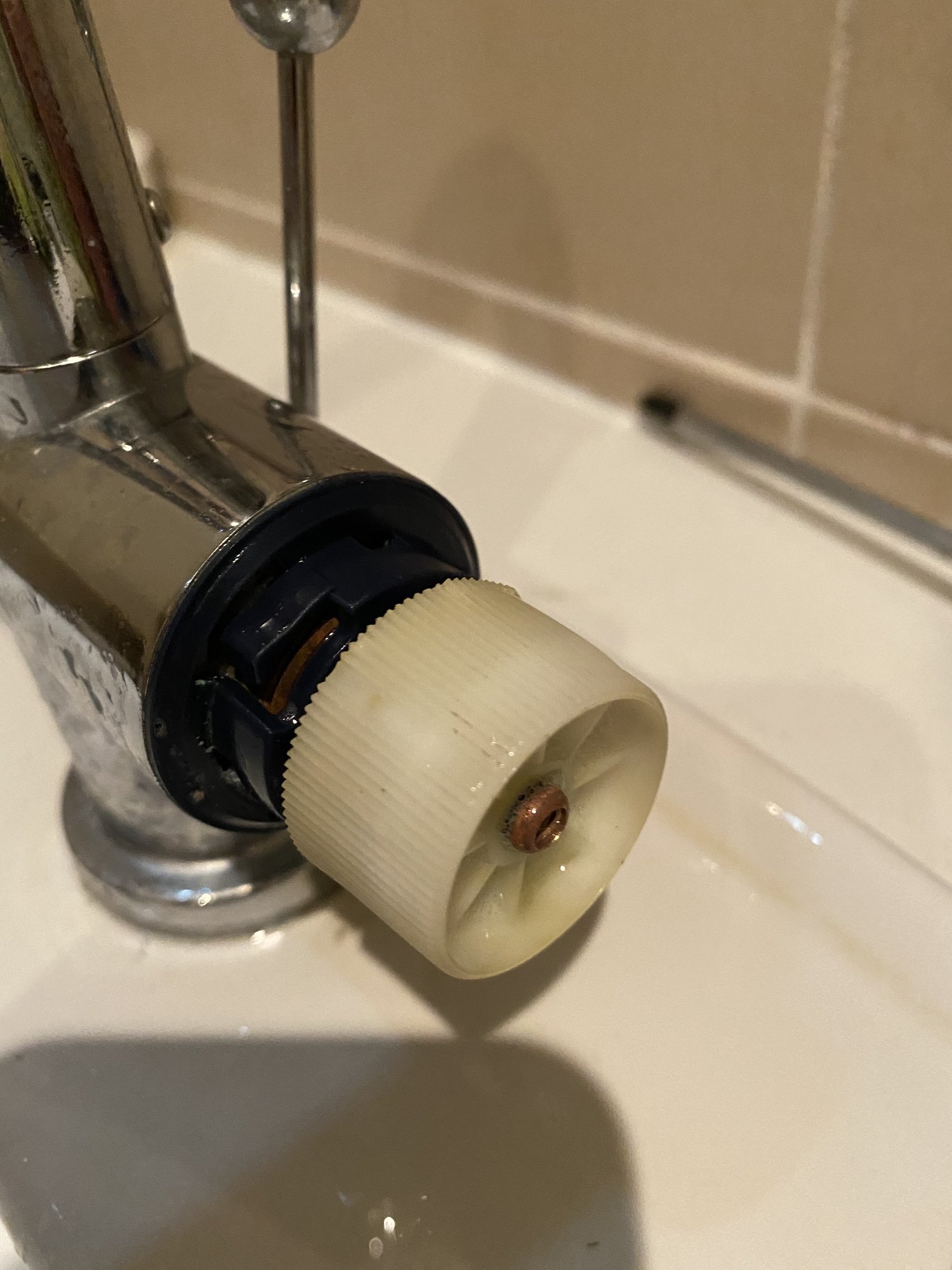 I'm trying to fix a drip in a bathroom mixer tap. I understand that I need to take the cartridge out abs descale the components. The problem I’m having is that part of the plastic handle won’t come off to allow me to get to the cartridge. It’s find on the other side, but I’m tried with all my strength and also tried to lever it off with a screwdriver. The later started to break the plastic.