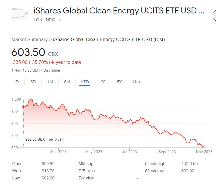 IMO it’s never a good time to sell when a fund has lost so much in the share value. I would be tempted to hold on for a recovery even if it’s a partial recovery. The year high is 1457 and it’s currently at 894 so there’s scope for some improvement in the future.csgohan4 said:INRG is tanking badly, I'm selling mine, beyond my risk appetite now. I had high hopes for this , luckily it is a small loss and not a significant amount invested