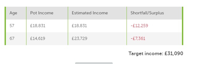 And provided me with the following based on me retiring at 57 (im 47 this year)