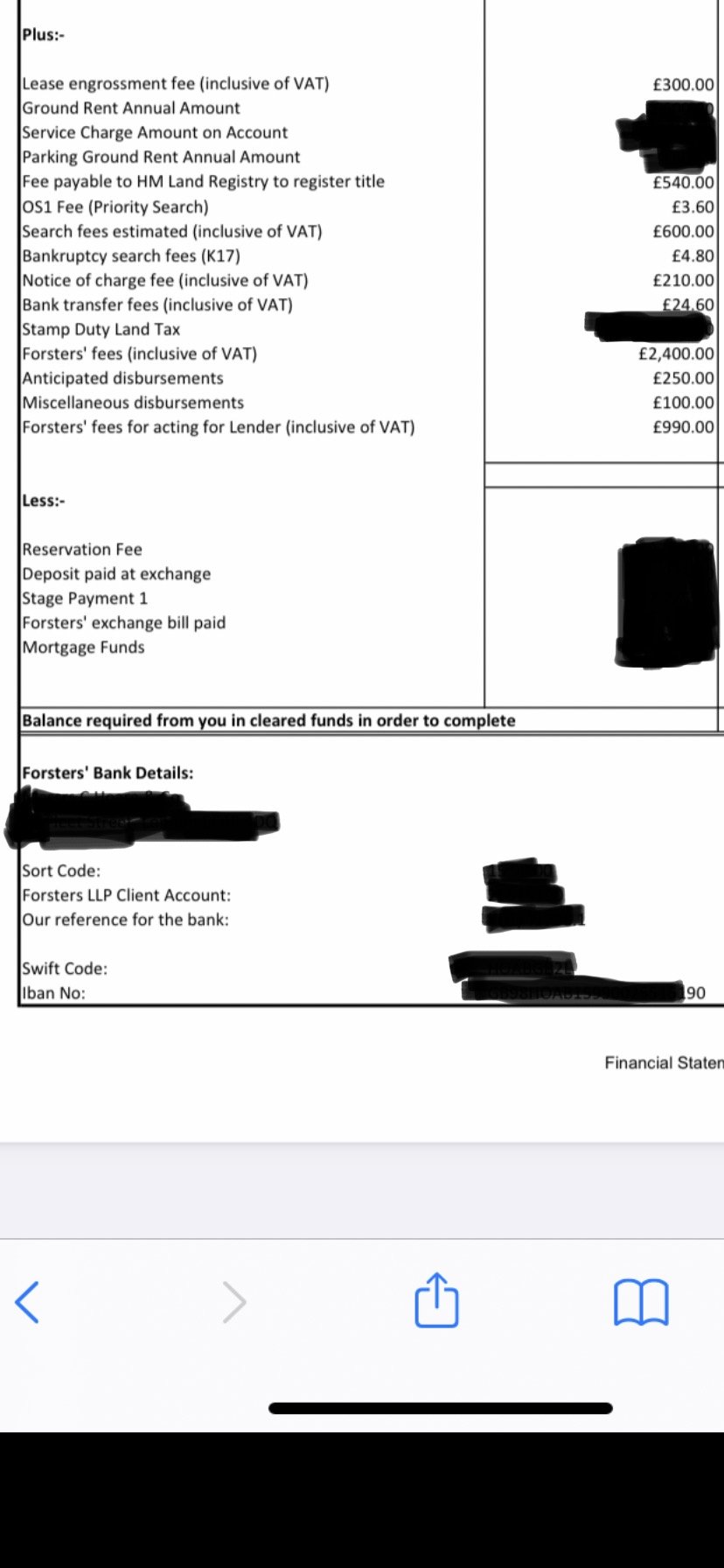 6. This statement you see above, was the 3rd iteration. The first statement, they forgot to include a £2k deposit we have already paid upfront. I queried it, and there was no apology but rather the blame was put on developer not passing this info over. I had a correspondence from them from when we put the deposit down to confirm we have paid £2k deposit already.Long story short; bad experience for the premium price I have paid, I consider it expensive, I won’t be recommending them. Hopefully this thread will help others in future.0 -