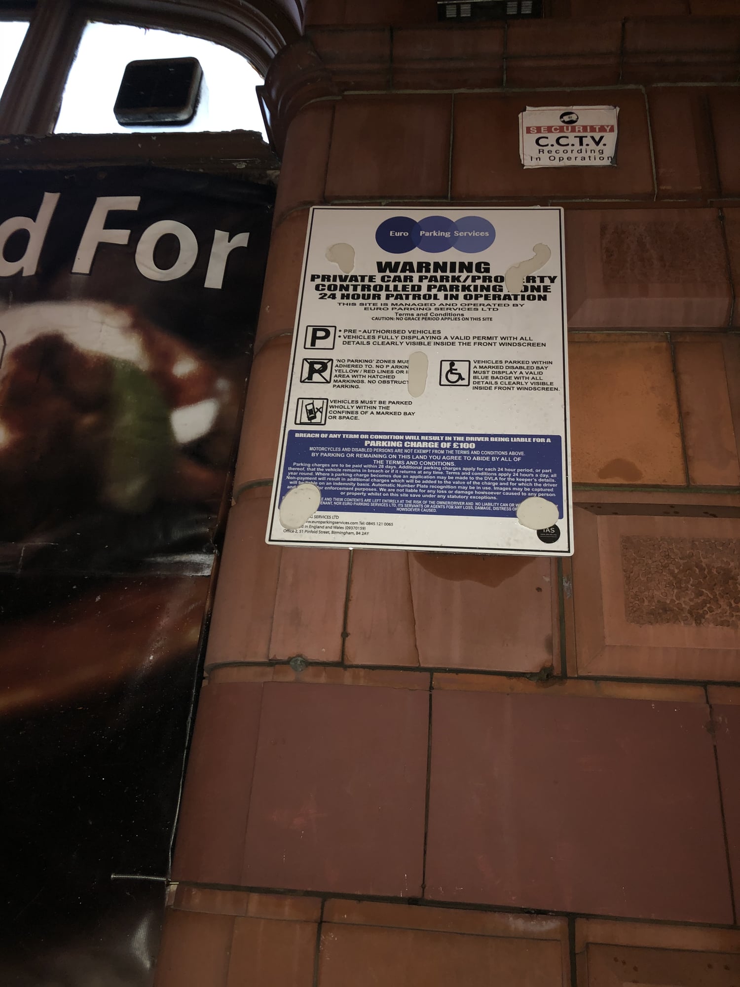I parked my car (on two separate occasions) on a pavement next to a takeaway for less than ten minutes to collect a takeaway. I had asked the takeaway owner where I can park and he told me that I could park at the front of the shop which is what I did. A couple of weeks later I received two PCN’s from Euro Parking Services Ltd in the post. As it was late and due to poor lighting I had not even noticed the signs that were displayed on the wall next to where I had parked. I went back to check and noticed the signs were there but they were not clear and had white marks covering some parts of the signs. Also there were no markings on the pavement to say where the parking restrictions applied to.