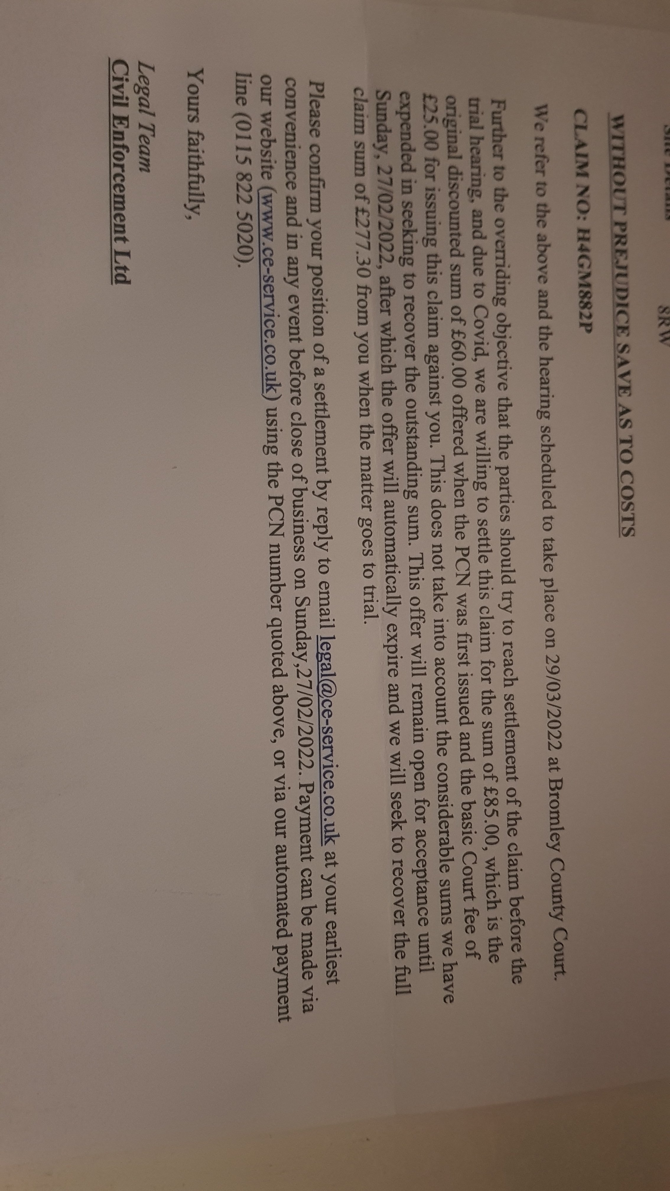 My hearing will be on 29th of March 2022. In the hearing letter from the court says: