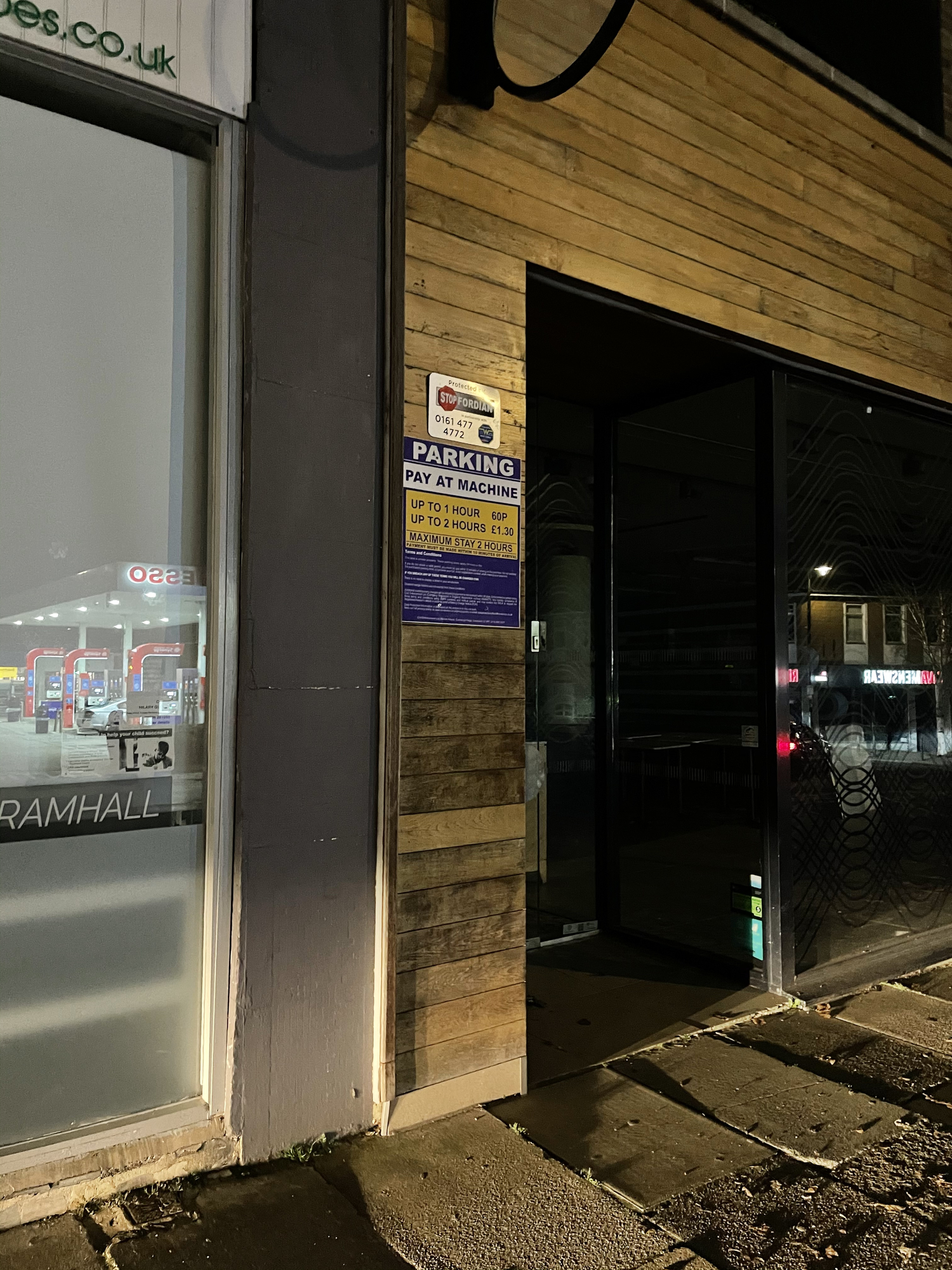 The parking signs look like this, it was December time dark and busy, if you can see on the picture you posted. And the last picture I posted, people pull up in front of the sign and ticket machine. I parked in the last bay outside pizza express. Coming in from the right of the sign. I didn’t see non of the signs coming in or out! But I read on some fb groups and other forums that the signs got removed at one point, as it was changed from council to private. I’m not sure when the signs where changed, as on google some images show them to be on the other side of the road opposite the shops, on the grass. So I don’t even know if they were there when I went there. Unfortunately I didn’t have chance to take pictures myself last year. So these I took are from last week. They should be high or on poles so people gathering around and cars can’t block them when parking.