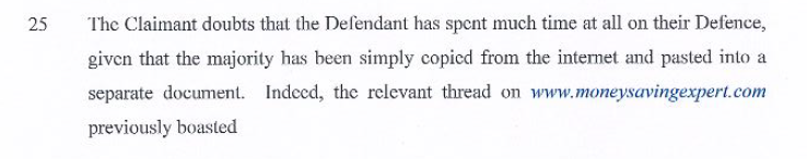 They also sent a skeleton argument on behalf of the clamant and the first point says its a copy and paste from moneysavingexpert.com lol.