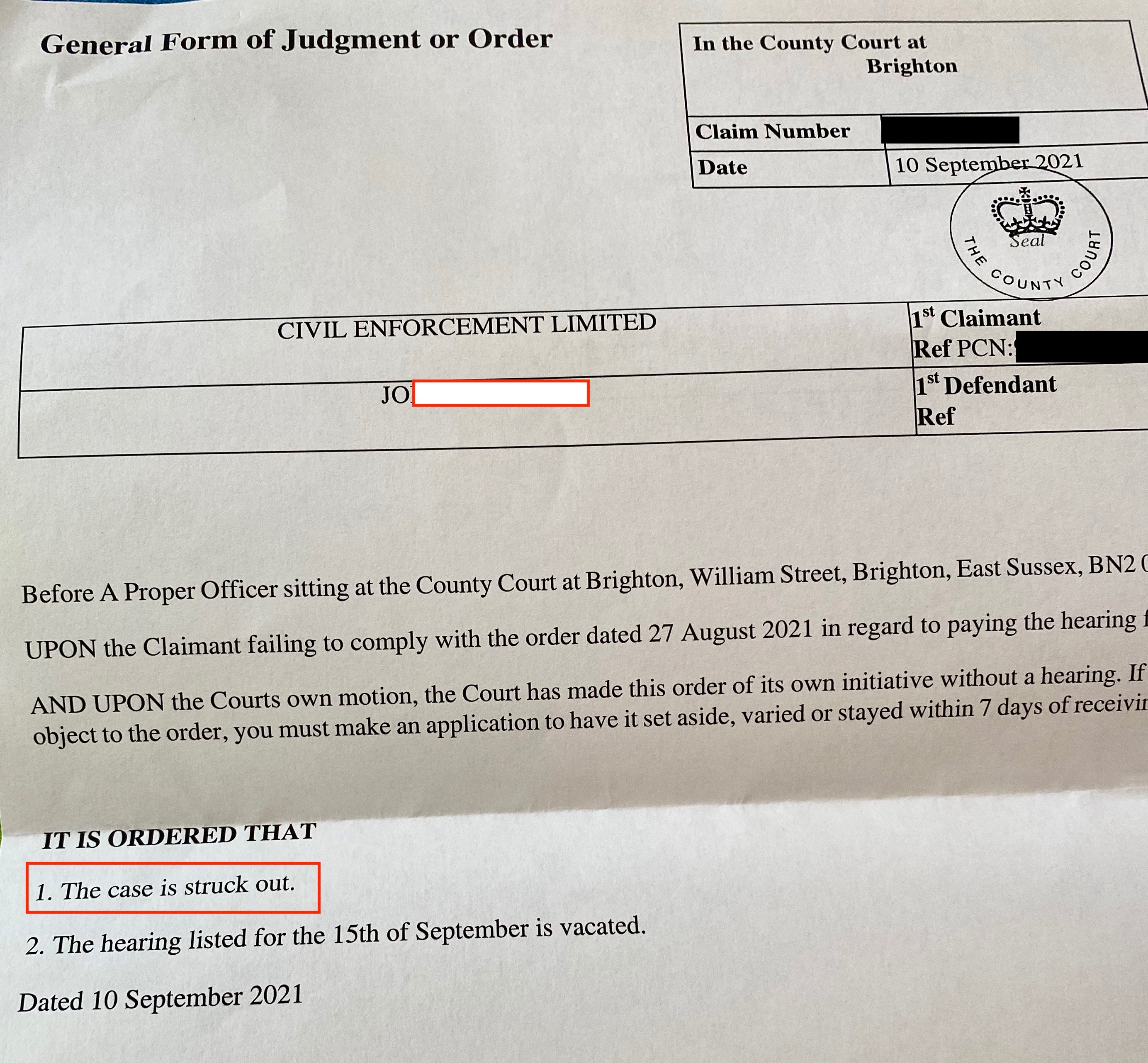 Nicely done again!ANOTHER CEL ONE BITES THE DUST!Keep all paperwork for a month or two though, just in case CEL object to that a order and show they did pay and the court missed it (happens).PRIVATE 'PCN'? DON'T PAY BUT DON'T IGNORE IT (except N.Ireland).
