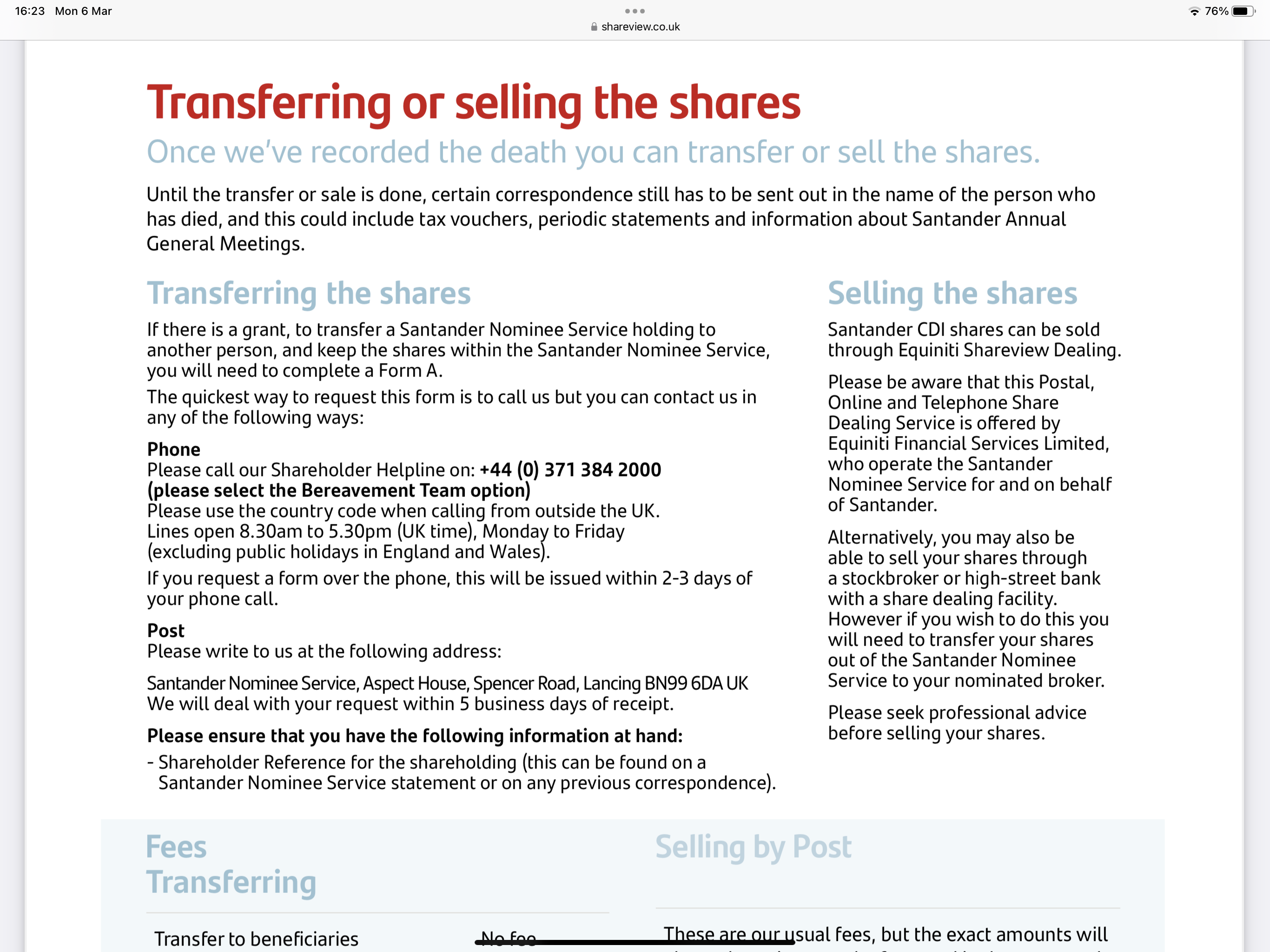 My husband was left some Santander shares in my late mum’s will. My mum died October 2016 and the issue of transferring these shares is still not resolved! I still receive paperwork addressed to my sister & myself as executors of my mum’s will. This is causing never ending upset to all involved for what reason, it’s maddening and sad. We employed the services of a known to the family solicitor to wind up mum’s estate and all went quite smoothly regarding the house and other affairs but this transferring of shares has a real issue for the family0