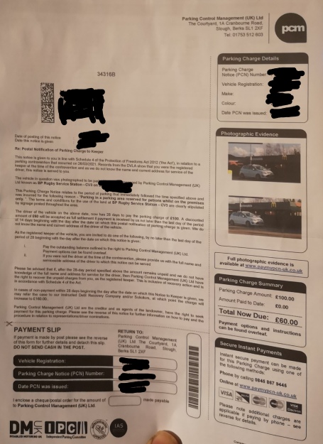 This week a PCN arrived to the keeper from parking control management (UK) ltd. aka pcm.