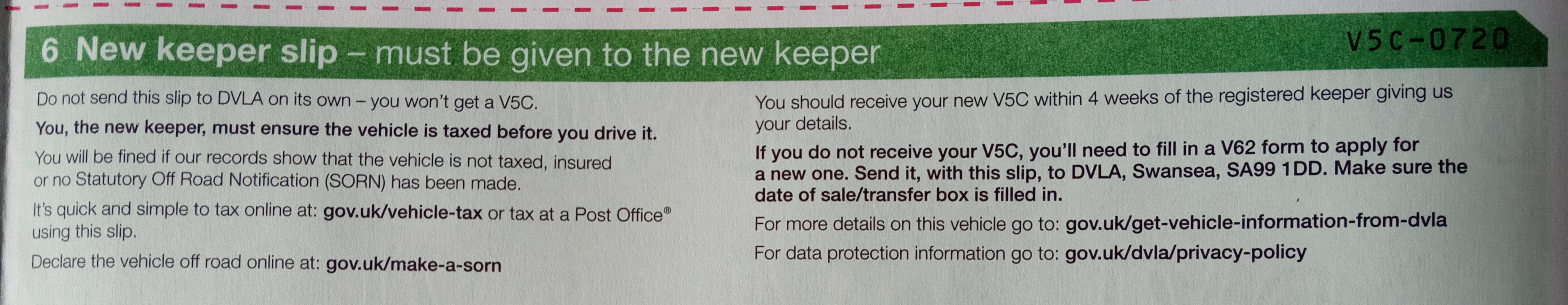 bought it yes, paid for it yes, drove it No. if you dont know and havent read, talked to DVLA and was advised that while you wait for V5c to be processed, a non taxed vehicle can be driven to prebooked garage which is what I did.GeordieGeorge said: