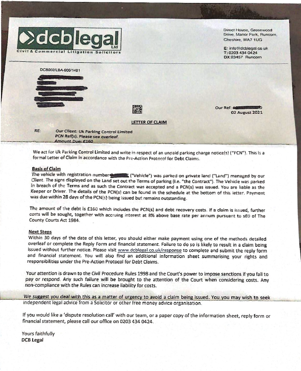 Umkomaas said:Why are you getting so hung up about a defence? You're not at that stage at the moment. By all means think about it, read the pinned Announcement with the template defence and the NEWBIES FAQ Announcement, second post, but don't get consumed by it.I've yet to see DCBL front any UKPC court claim - UKPC preferred lawyers for such cases are SCS Law and normally only where multiple unpaid tickets are involved.If DCB Legal issue a court claim via the Northampton CCBC, then let's deal with that then; you'll get over a month to sort it all out.